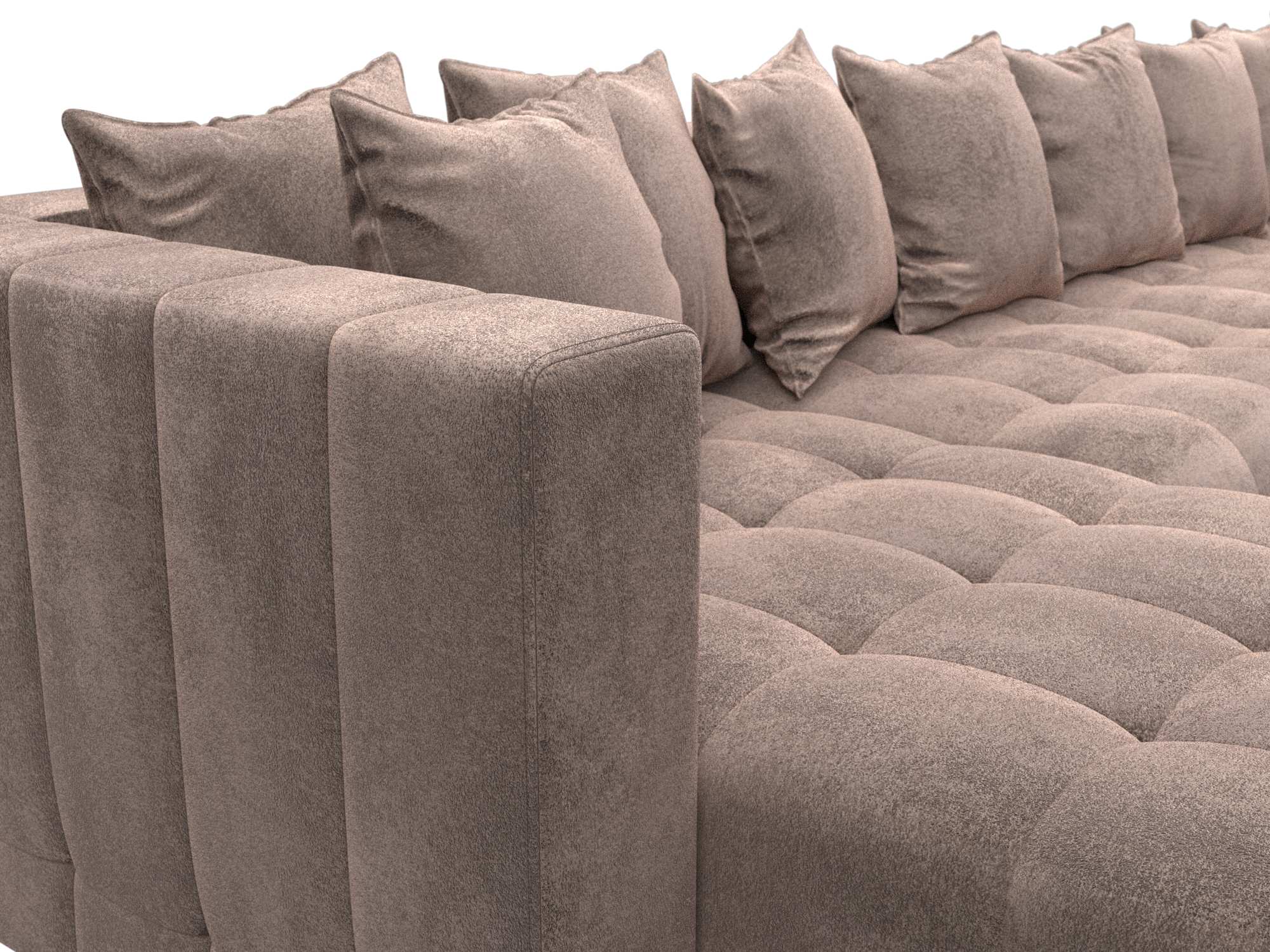 Обивка: велюр, замша и шенилл. Угловой диван производится в различных цветовых оттенках, от которых зависит выбор ткани. Материи прочные, не выцветают на протяжении всего срока эксплуатации.