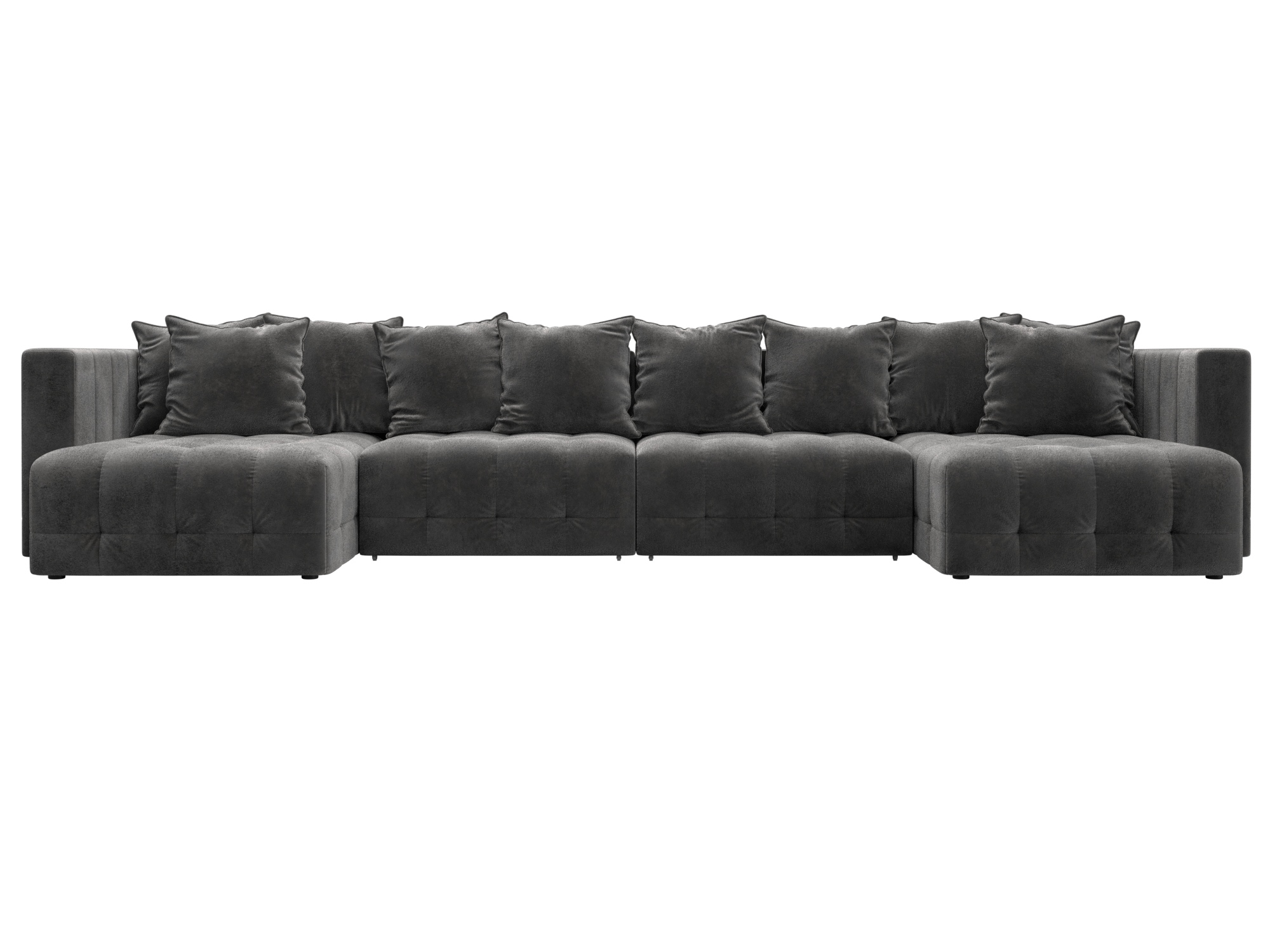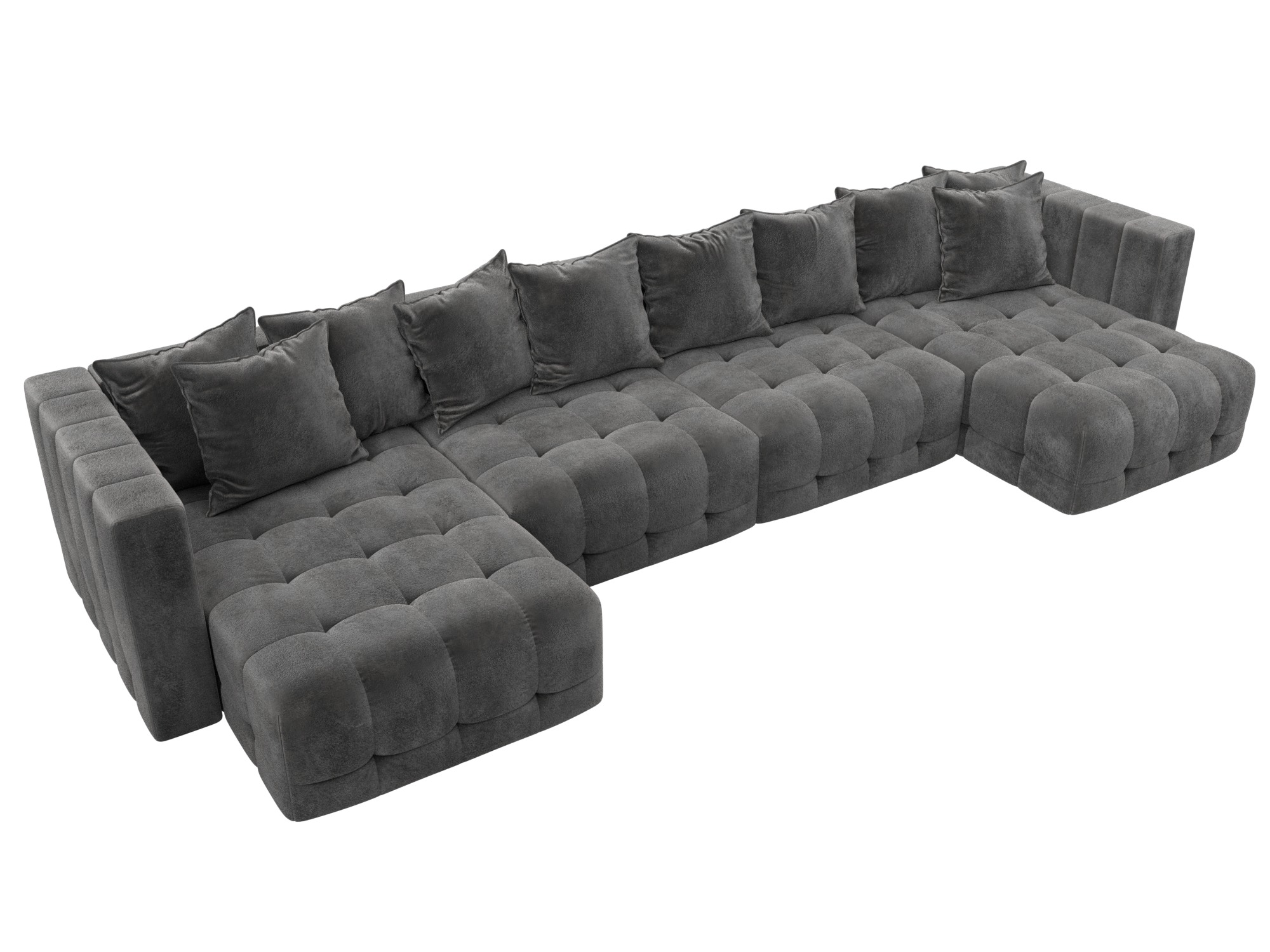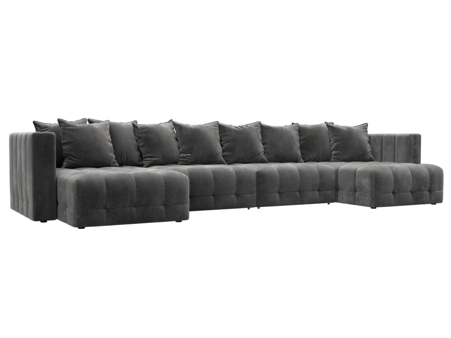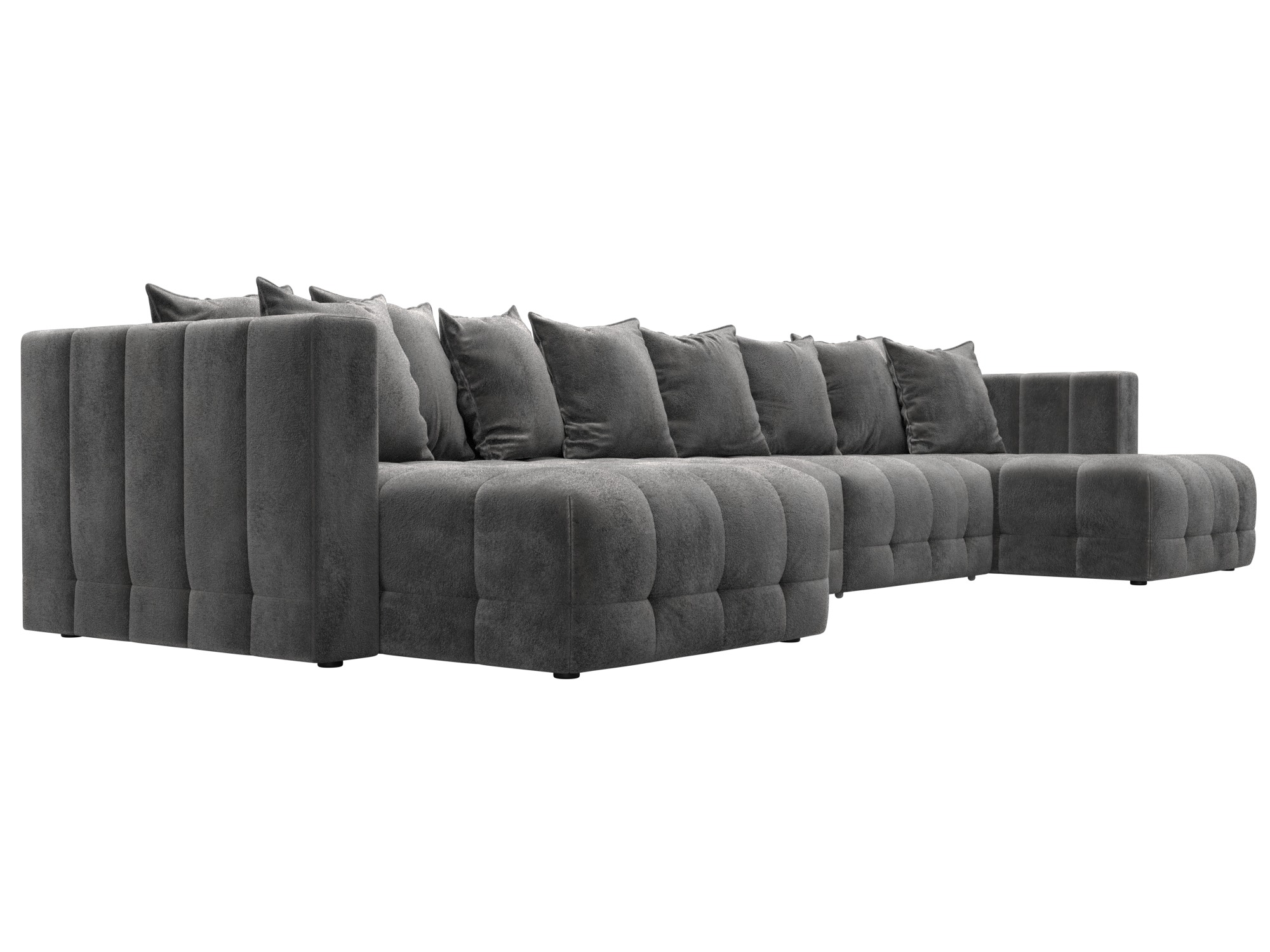 Диван П-образный Лига-052 НПБ Лонг Велюр серый