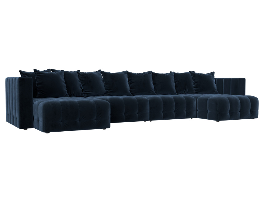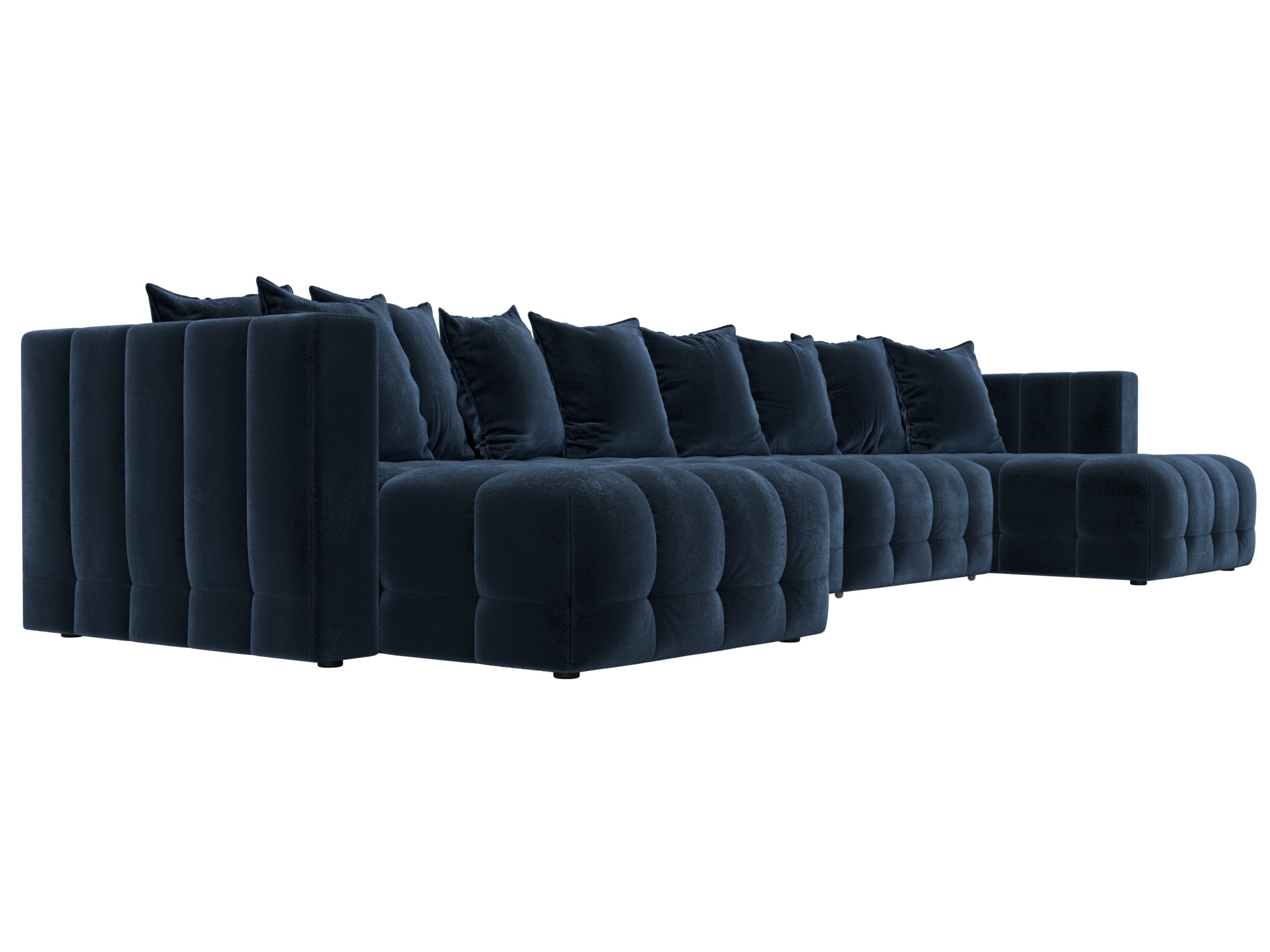 Диван П-образный Лига-052 НПБ Лонг Велюр синий