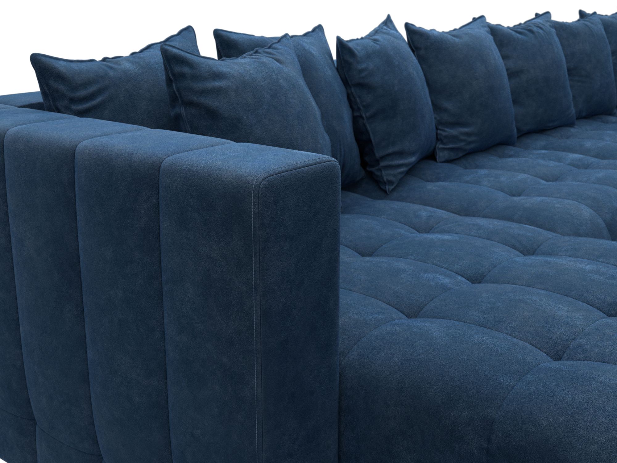 Обивка: велюр, замша и шенилл. Угловой диван производится в различных цветовых оттенках, от которых зависит выбор ткани. Материи прочные, не выцветают на протяжении всего срока эксплуатации.