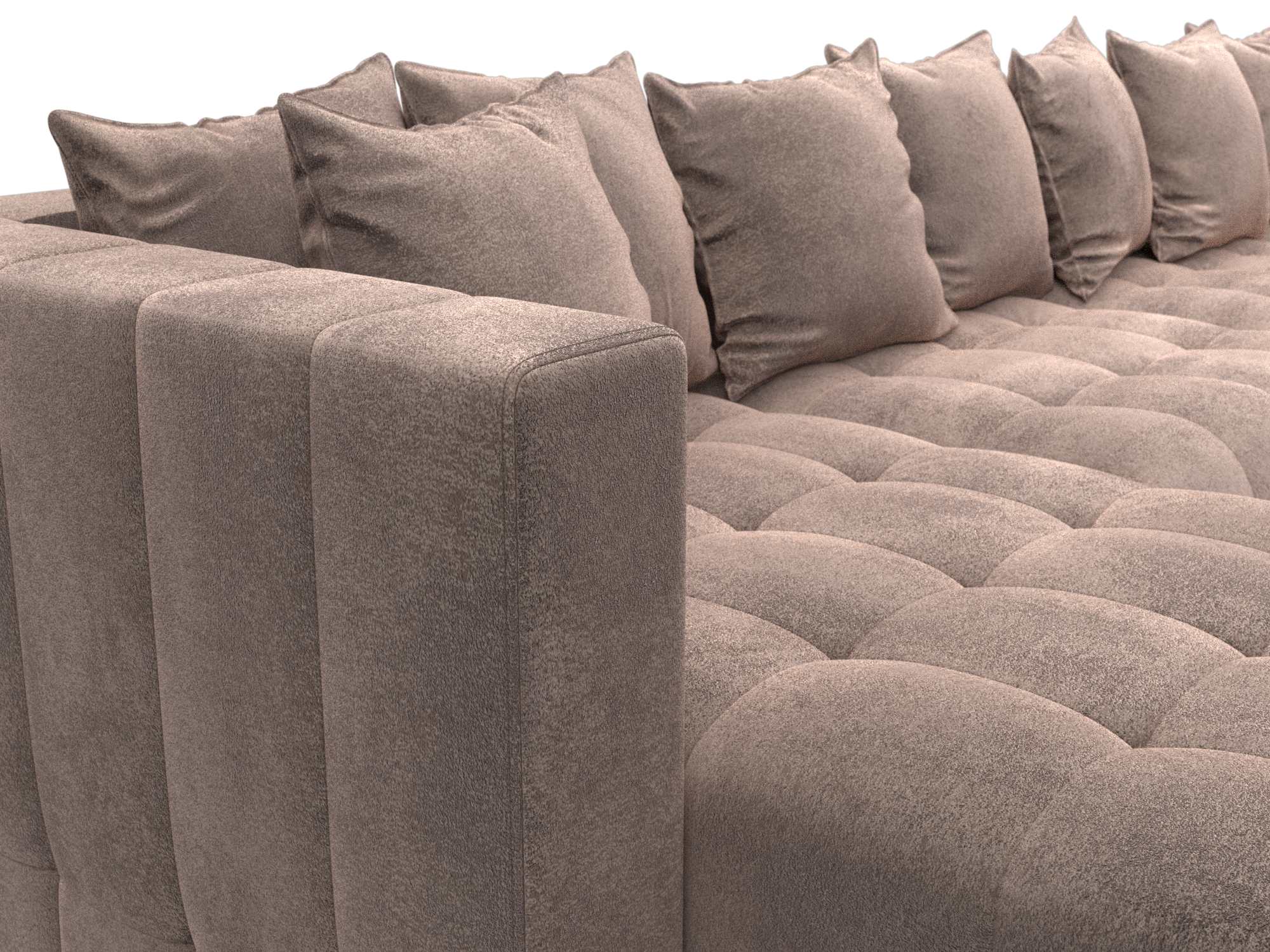 Обивка: велюр, замша и шенилл. Угловой диван производится в различных цветовых оттенках, от которых зависит выбор ткани. Материи прочные, не выцветают на протяжении всего срока эксплуатации.
