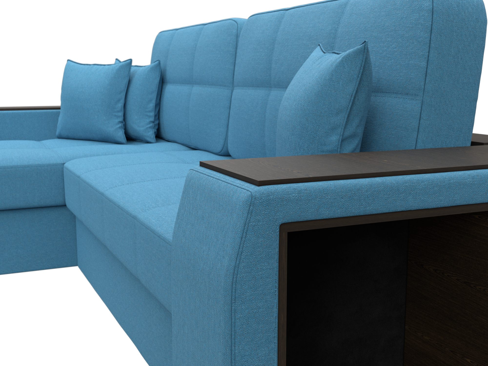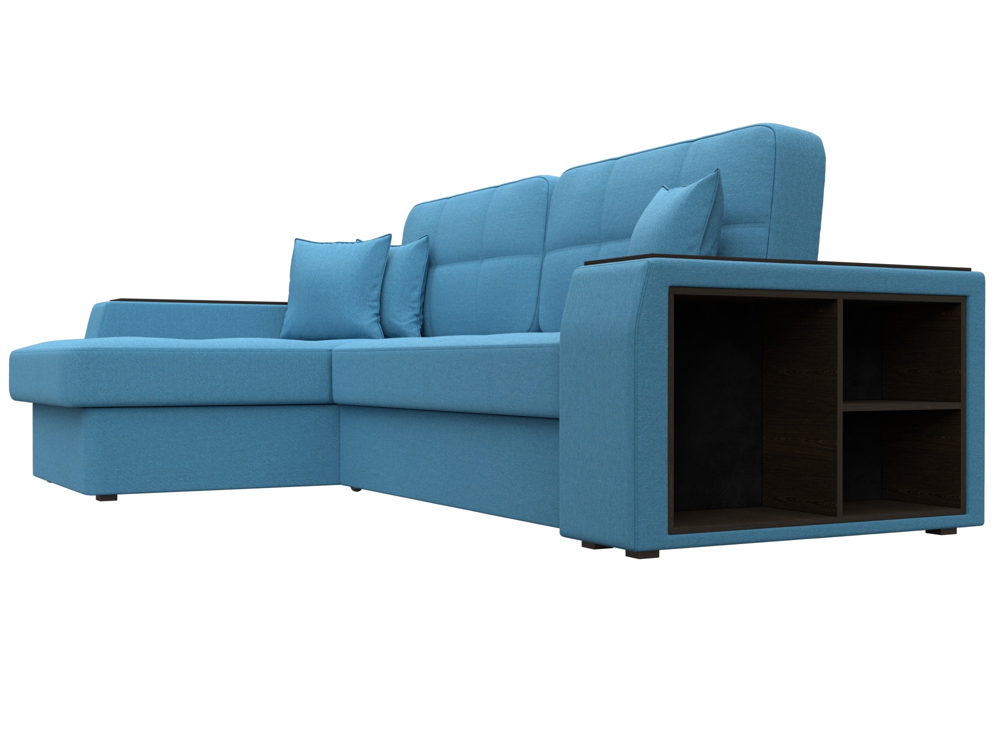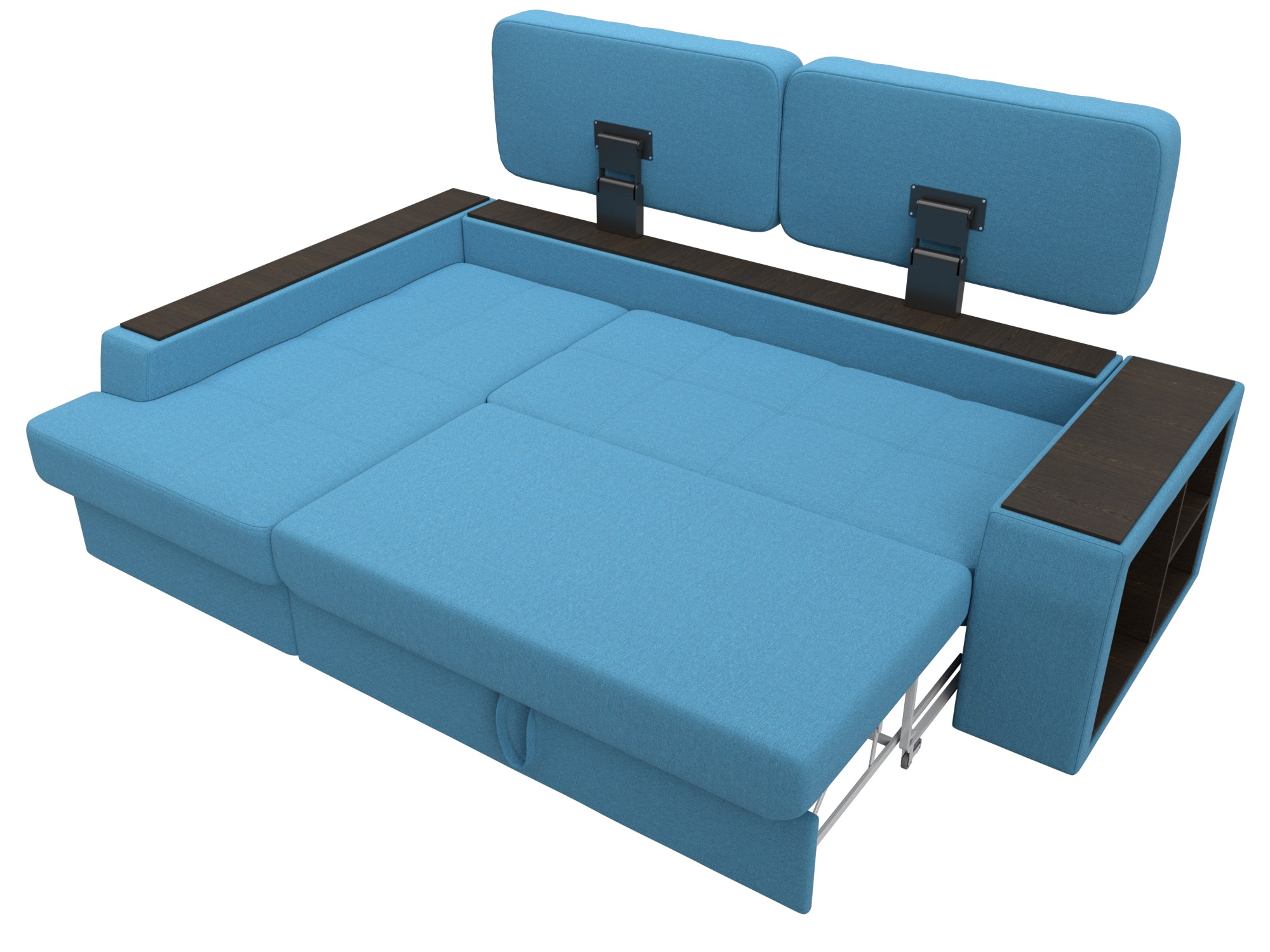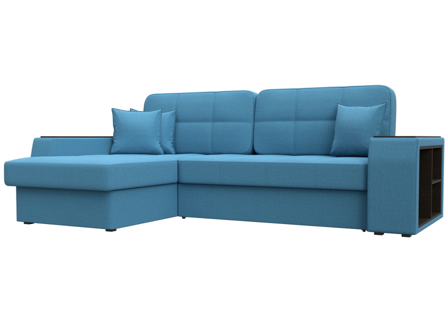 Шикарный угловой диван Брюссель удобен и функционален в использовании. Подлокотники выполняют роль мини-столиков. Одна из боковин дополнена книжными полками, декорированным «под дерево». Под длинной боковиной расположена ниша для белья. Изделие оснащено удобным механизмом трансформации в двуспальную кровать.