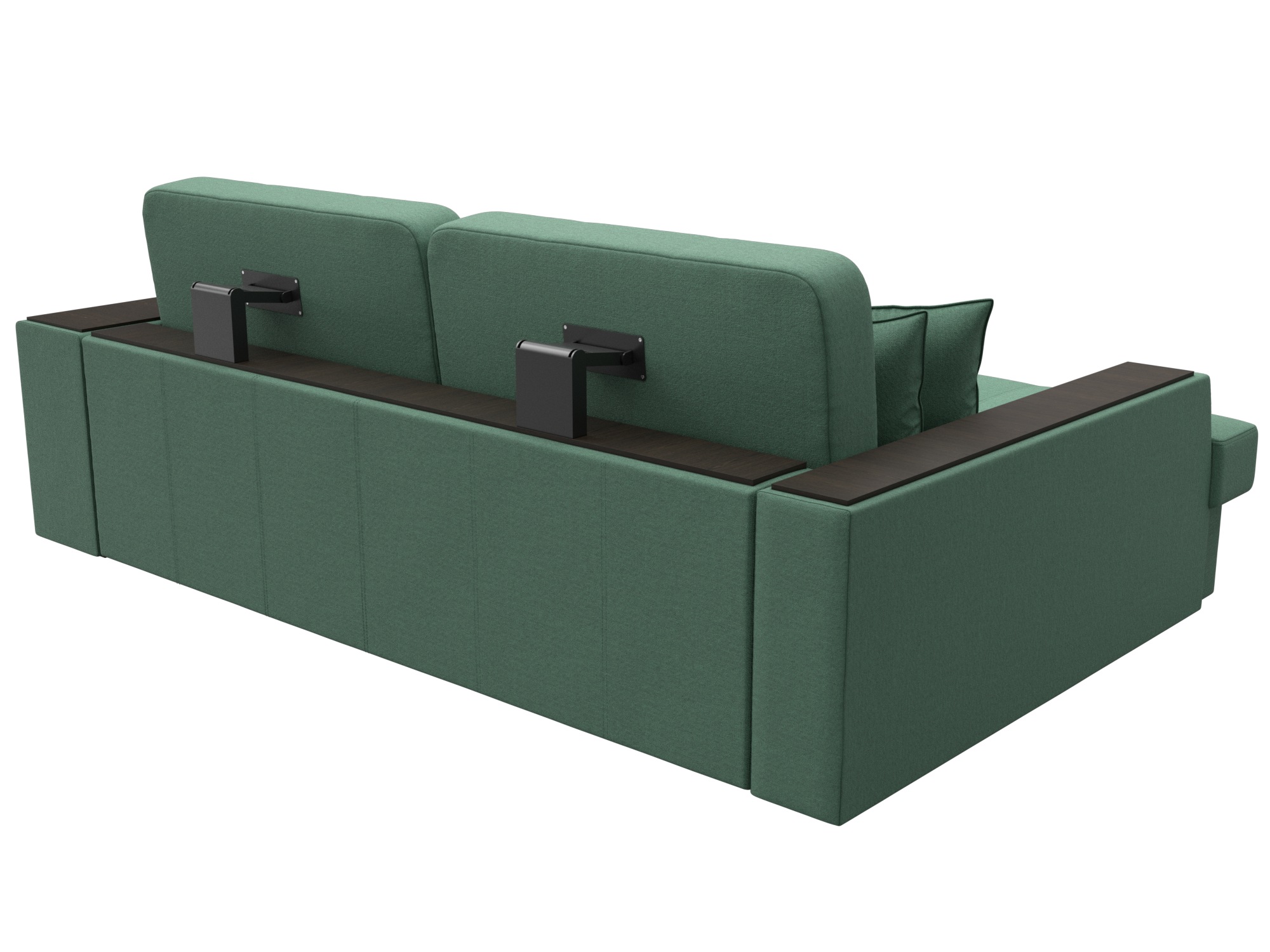 Шикарный угловой диван Брюссель удобен и функционален в использовании. Подлокотники выполняют роль мини-столиков. Одна из боковин дополнена книжными полками, декорированным «под дерево». Под длинной боковиной расположена ниша для белья. Изделие оснащено удобным механизмом трансформации в двуспальную кровать.