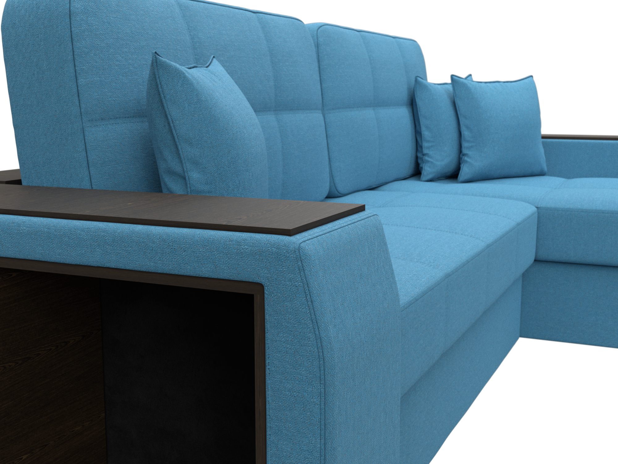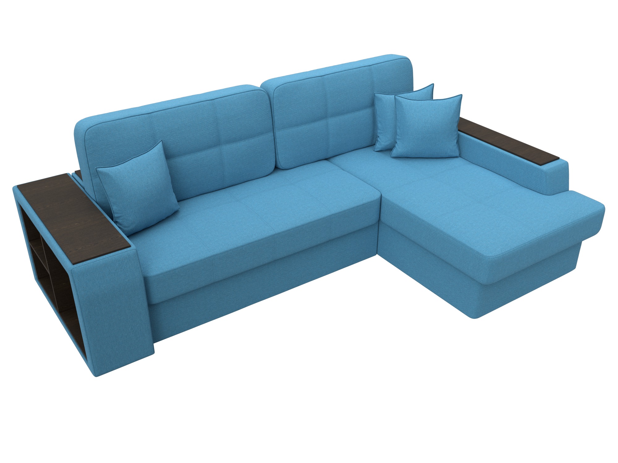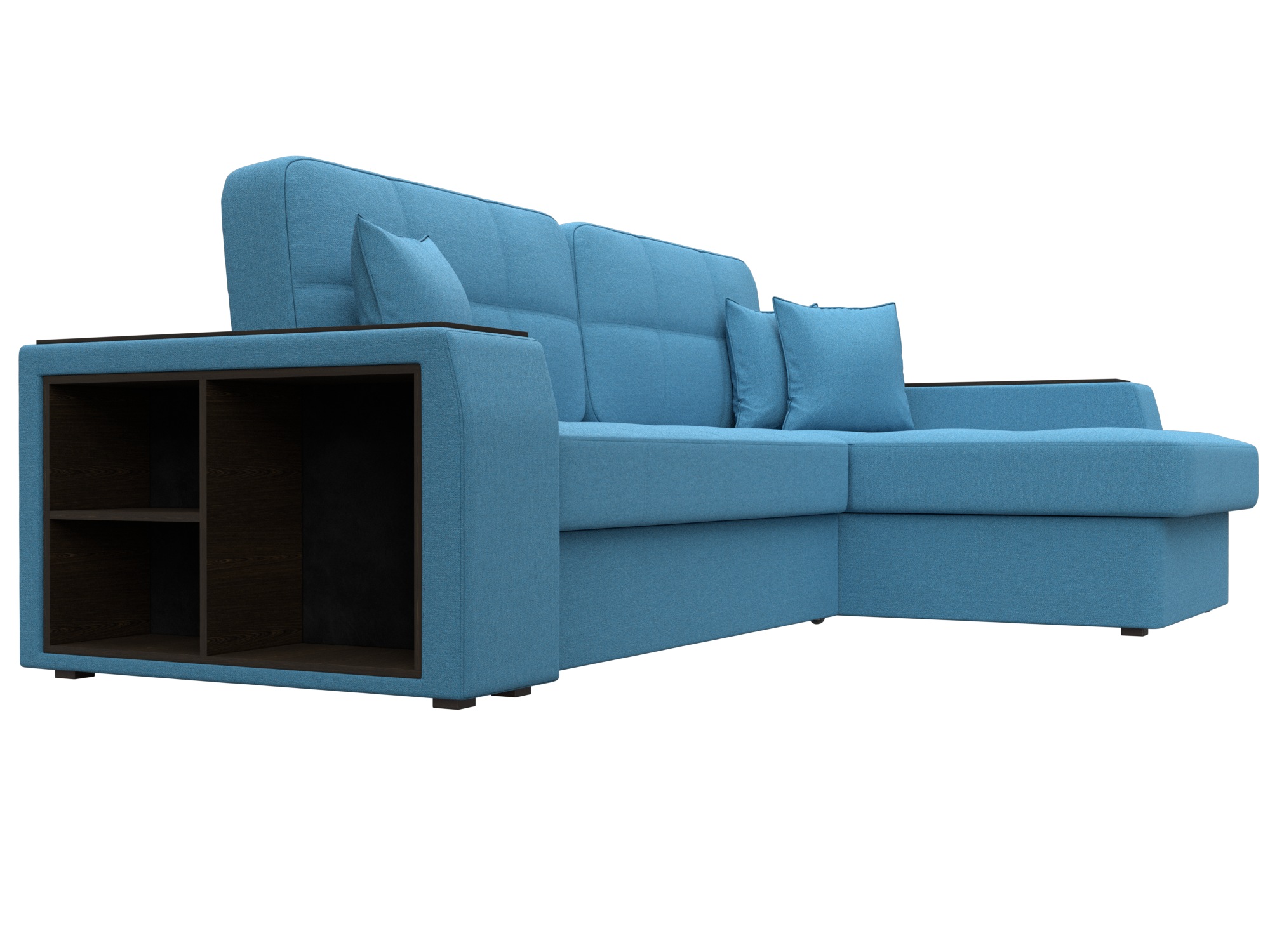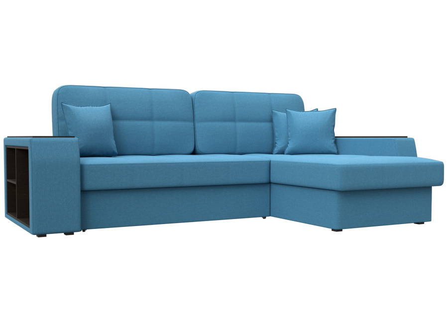 Шикарный угловой диван Брюссель удобен и функционален в использовании. Подлокотники выполняют роль мини-столиков. Одна из боковин дополнена книжными полками, декорированным «под дерево». Под длинной боковиной расположена ниша для белья. Изделие оснащено удобным механизмом трансформации в двуспальную кровать.
