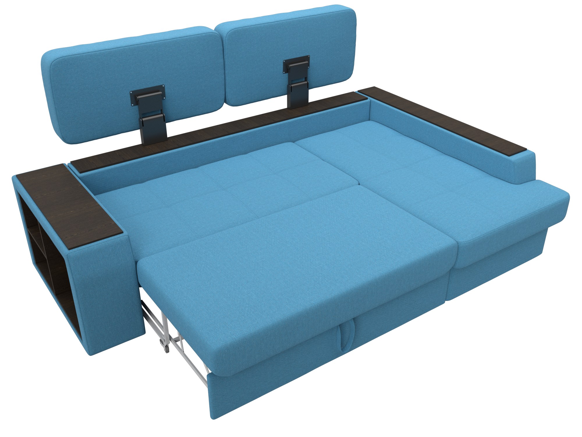 Шикарный угловой диван Брюссель удобен и функционален в использовании. Подлокотники выполняют роль мини-столиков. Одна из боковин дополнена книжными полками, декорированным «под дерево». Изделие оснащено удобным механизмом трансформации в двуспальную кровать.