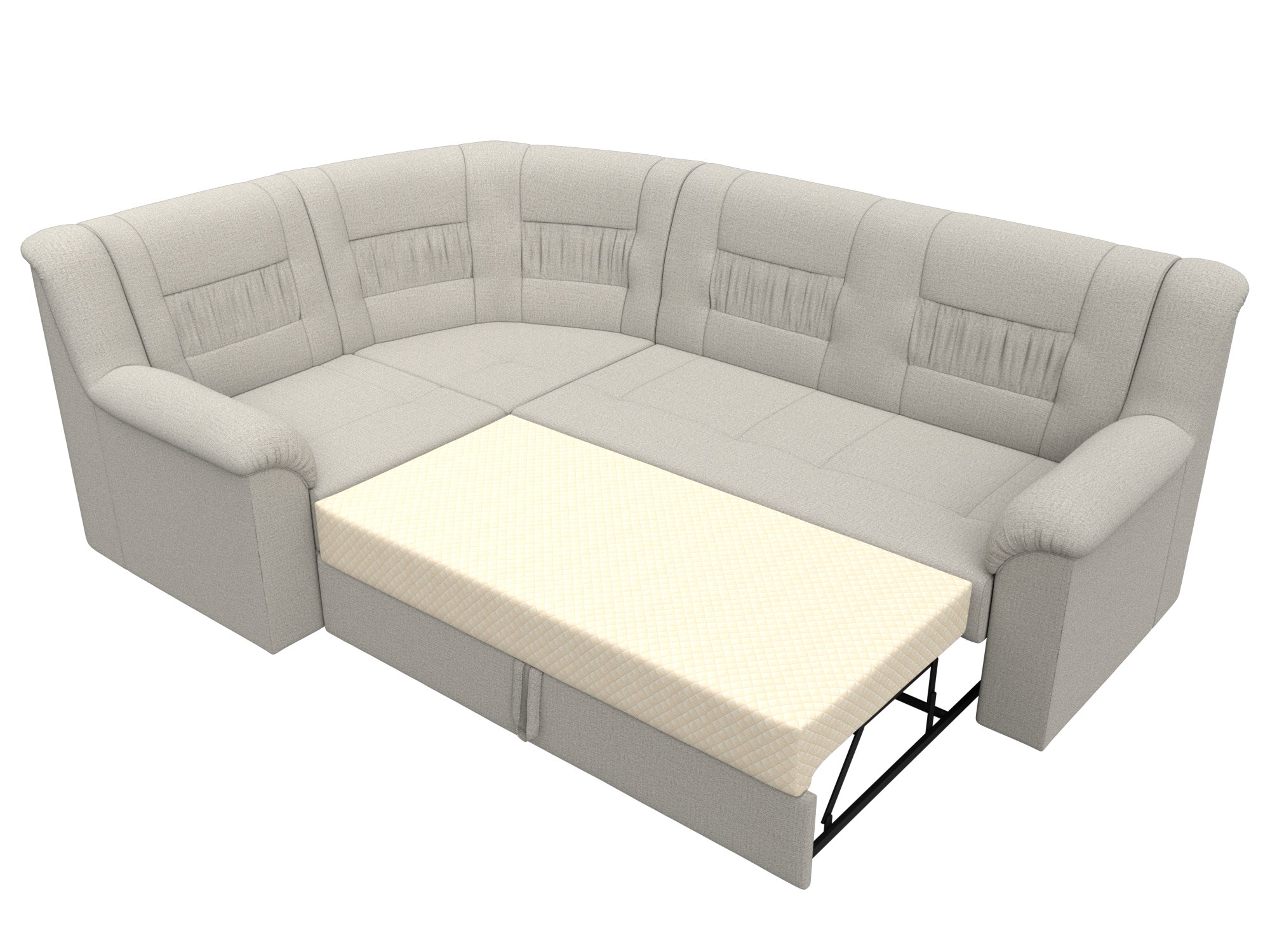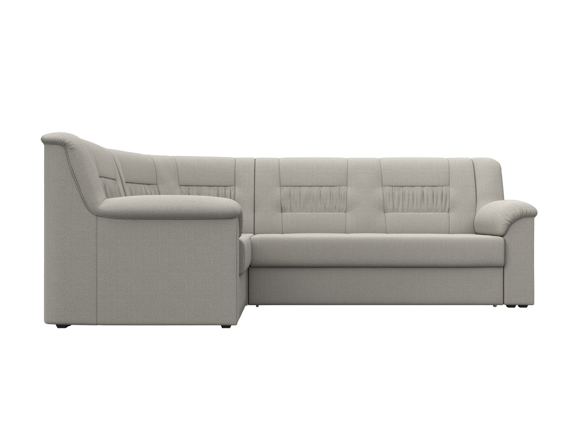 Карелия – большой угловой диван, выполненный в классическом стиле. По желанию владельца, угол можно разместить с правой или левой стороны. Конструкция быстро трансформируется в кровать. Комфортабельность отдыха обеспечивают мягкие подлокотники и спинка.