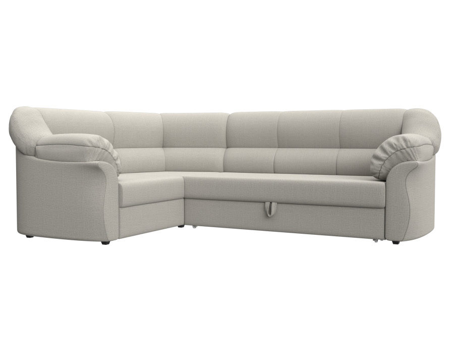 Карнелла – недорогой угловой диван, красивый снаружи и прочный внутри. Он устойчиво стоит на деревянных ножках, украшая своим присутствием гостиную. Спинка дивана украшена широкой каретной стяжкой. Угол можно расположить как справа, так и слева. Изделие легко раскладывается, образуя комфортное спальное место.