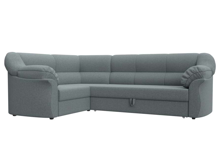 Карнелла – недорогой угловой диван, красивый снаружи и прочный внутри. Он устойчиво стоит на деревянных ножках, украшая своим присутствием гостиную. Спинка дивана украшена широкой каретной стяжкой. Угол можно расположить как справа, так и слева. Изделие легко раскладывается, образуя комфортное спальное место.