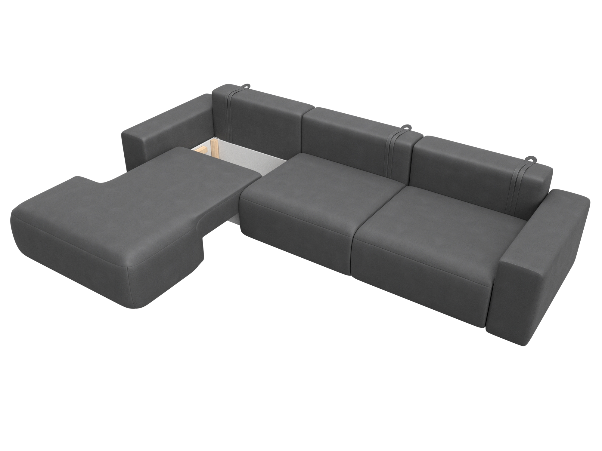Механизм раскладки: еврокнижка. Сиденье дивана легко выдвигается вперед по направляющим. Спинка, закрепленная на кронштейнах, вручную укладывается в открывшуюся нишу.