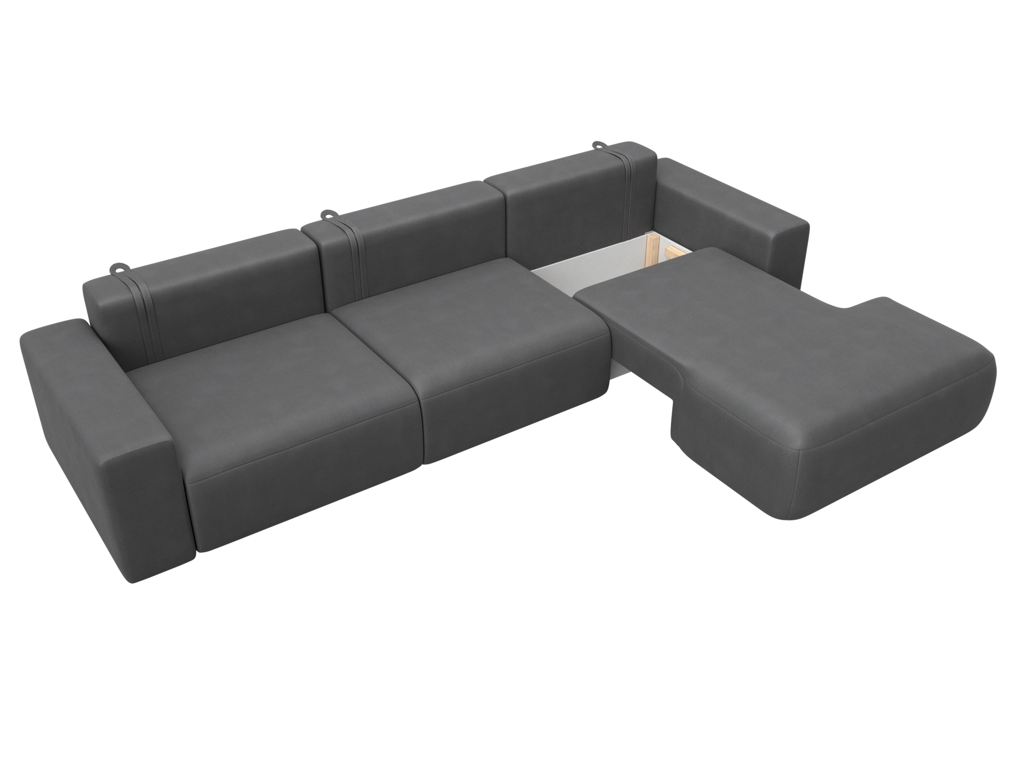 Механизм раскладки: еврокнижка. Сиденье дивана легко выдвигается вперед по направляющим. Спинка, закрепленная на кронштейнах, вручную укладывается в открывшуюся нишу.