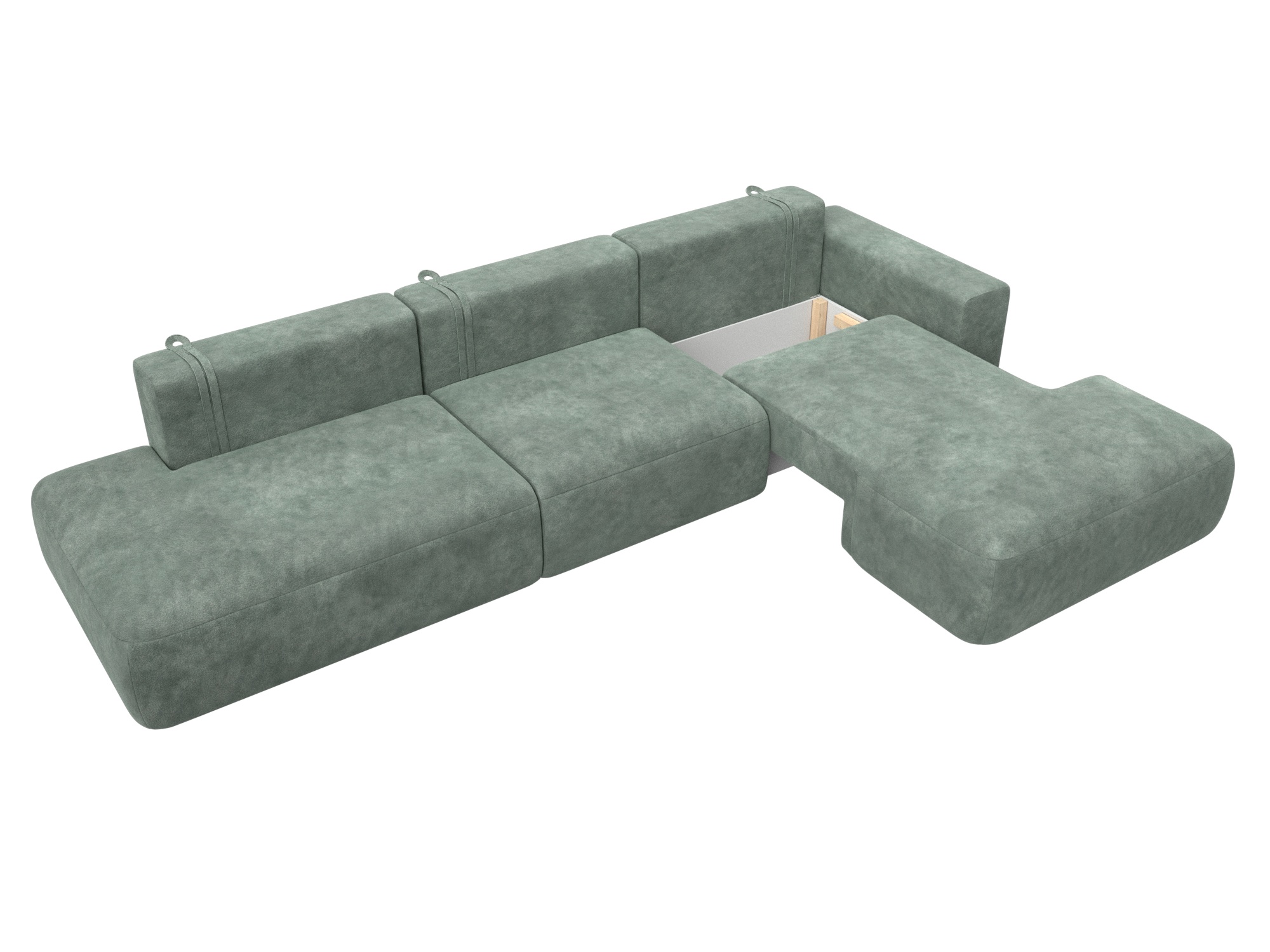 Диван угловой Лига-036 НПБ Модерн Лонг правый угол Велюр зеленый