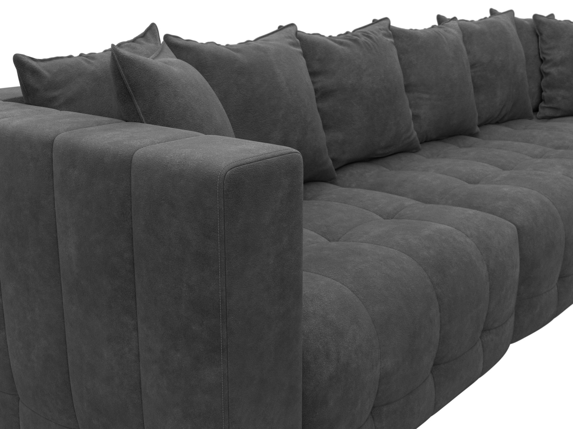 Обивка: велюр, замша и шенилл. Угловой диван производится в различных цветовых оттенках, от которых зависит выбор ткани. Материи прочные, не выцветают на протяжении всего срока эксплуатации.