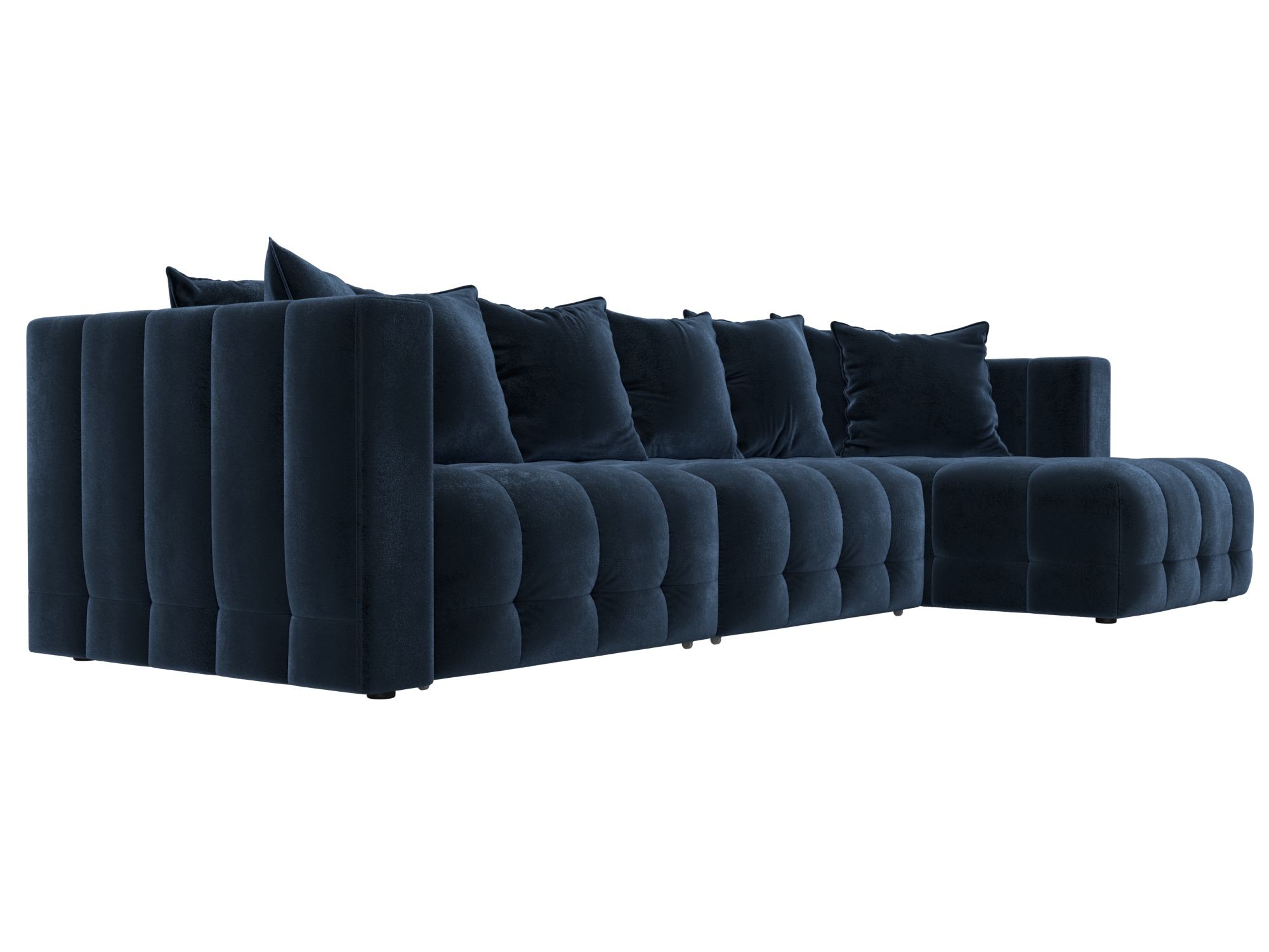 Диван угловой Лига-052 НПБ Лонг угол универсальный Велюр синий