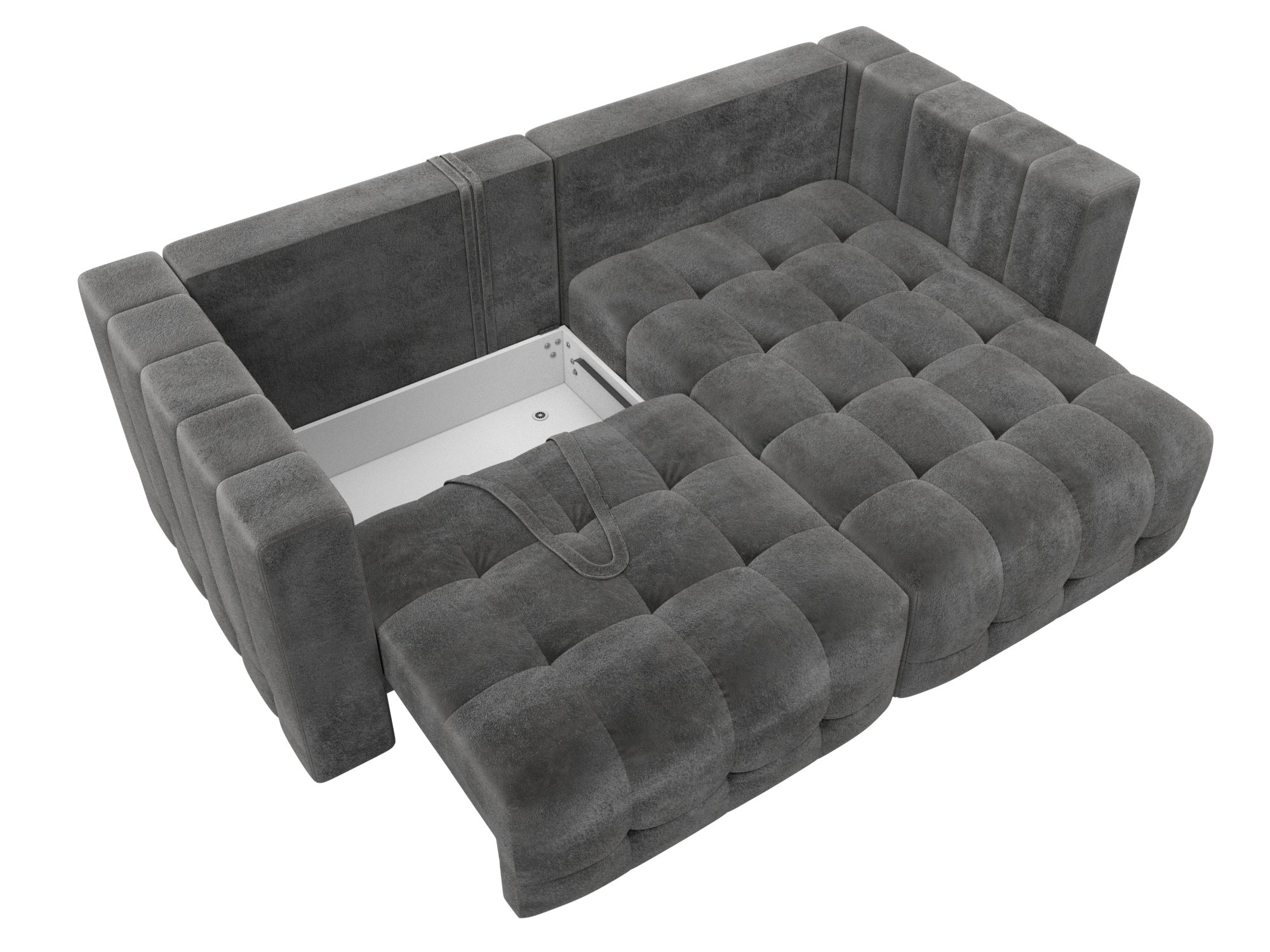 При габаритах: 226x90x160 см подойдет для комнат любых размеров, легко раскладывается, обеспечивая спальное место 160x192 см. Угол дивана универсальный, можно собрать с левым или с правым углом.