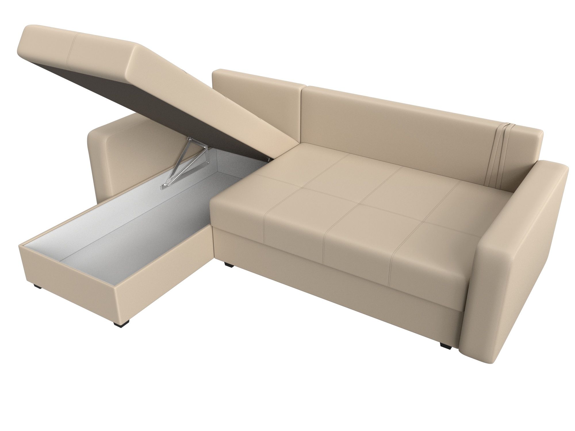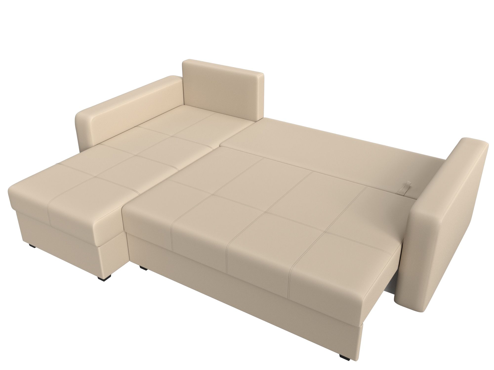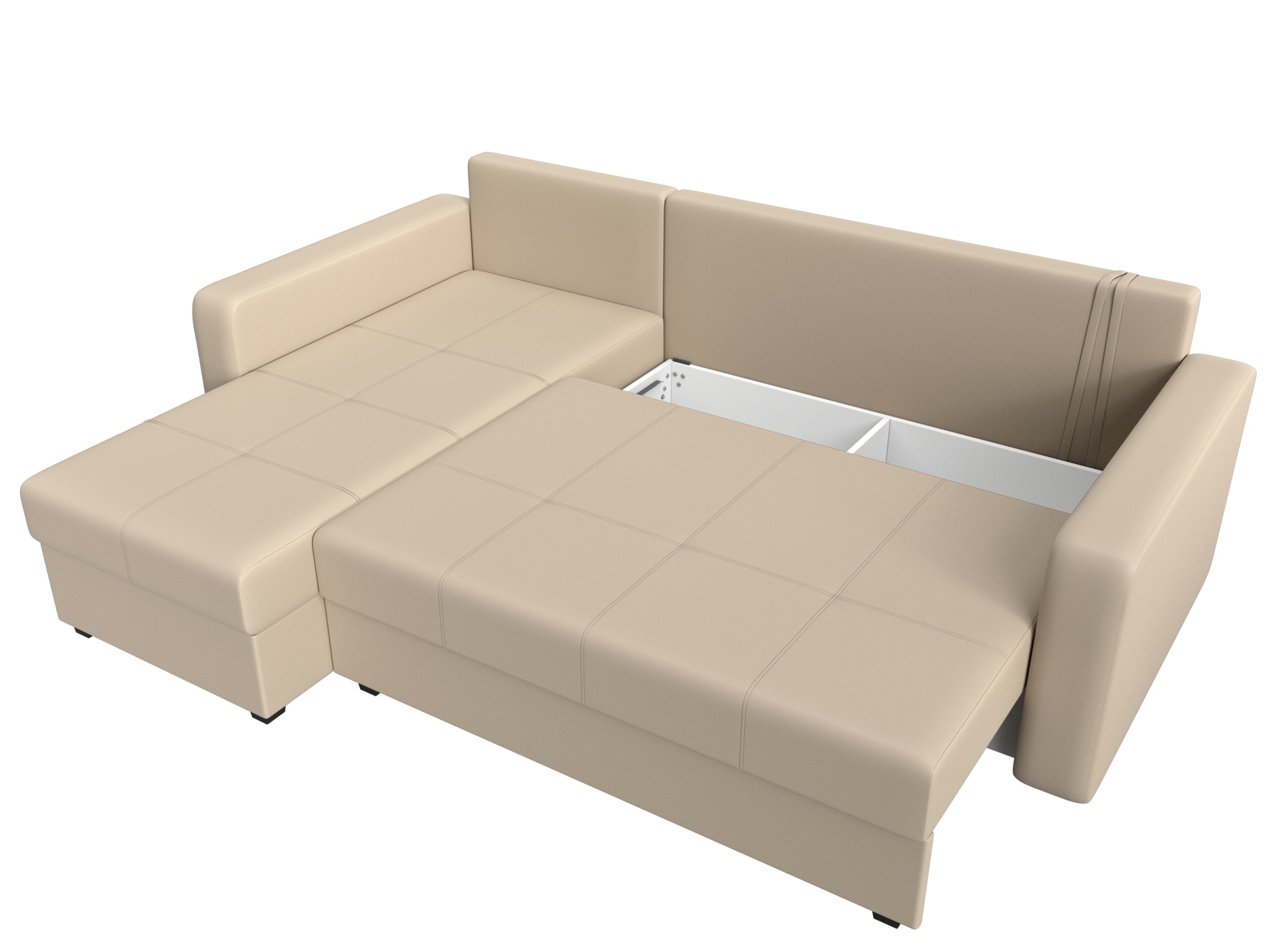 Механизм раскладки: еврокнижка. Одна из самых простых и популярных систем. Разложить угловой диван можно потянув за нижнюю часть до упора и опустив спинку в нишу. Элементы дополнены надежными роликами и кронштейнами.
