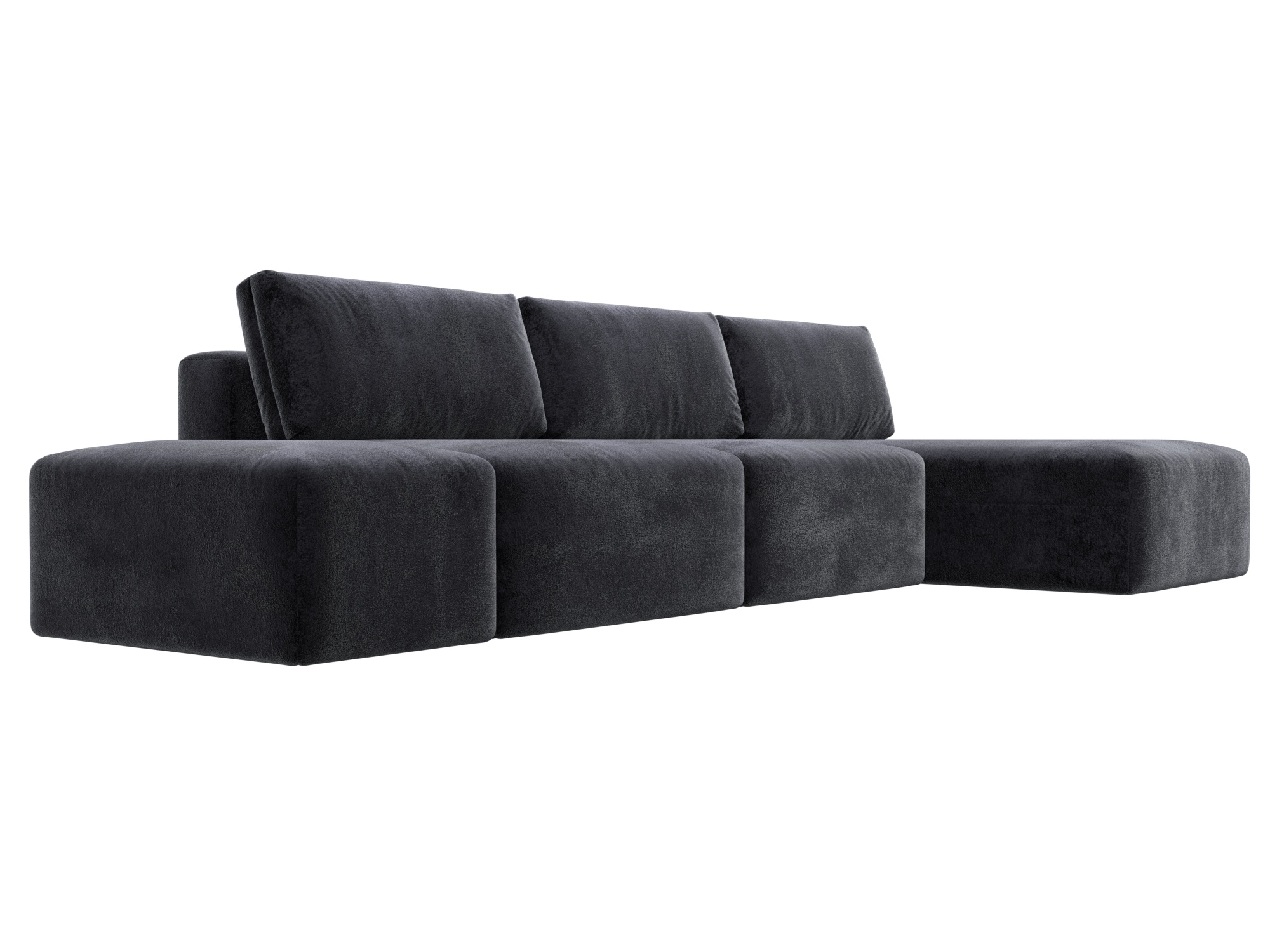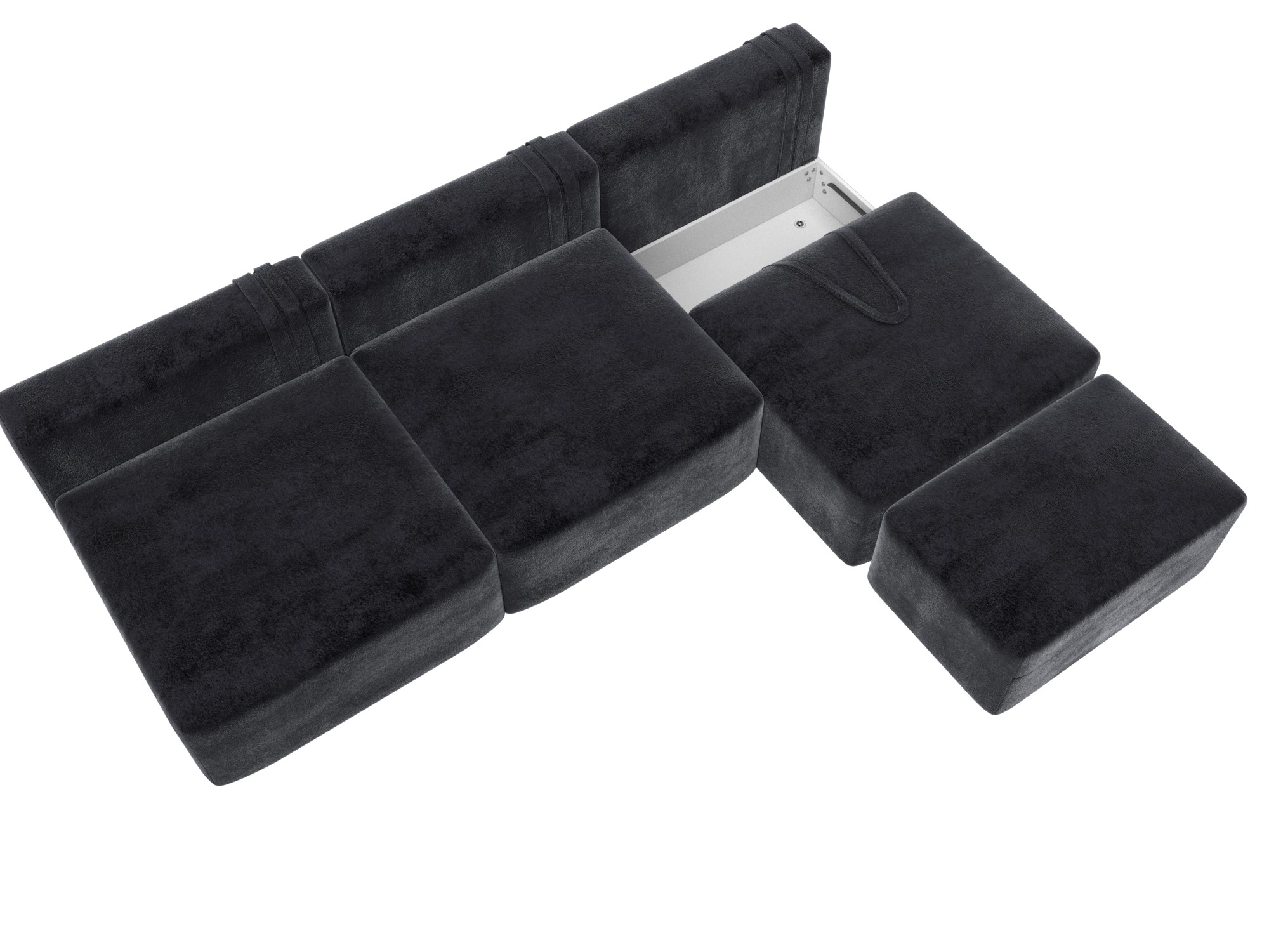 Диван угловой модульный с пуфом Лига-060 НПБ Лонг угол универсальный Велюр серый