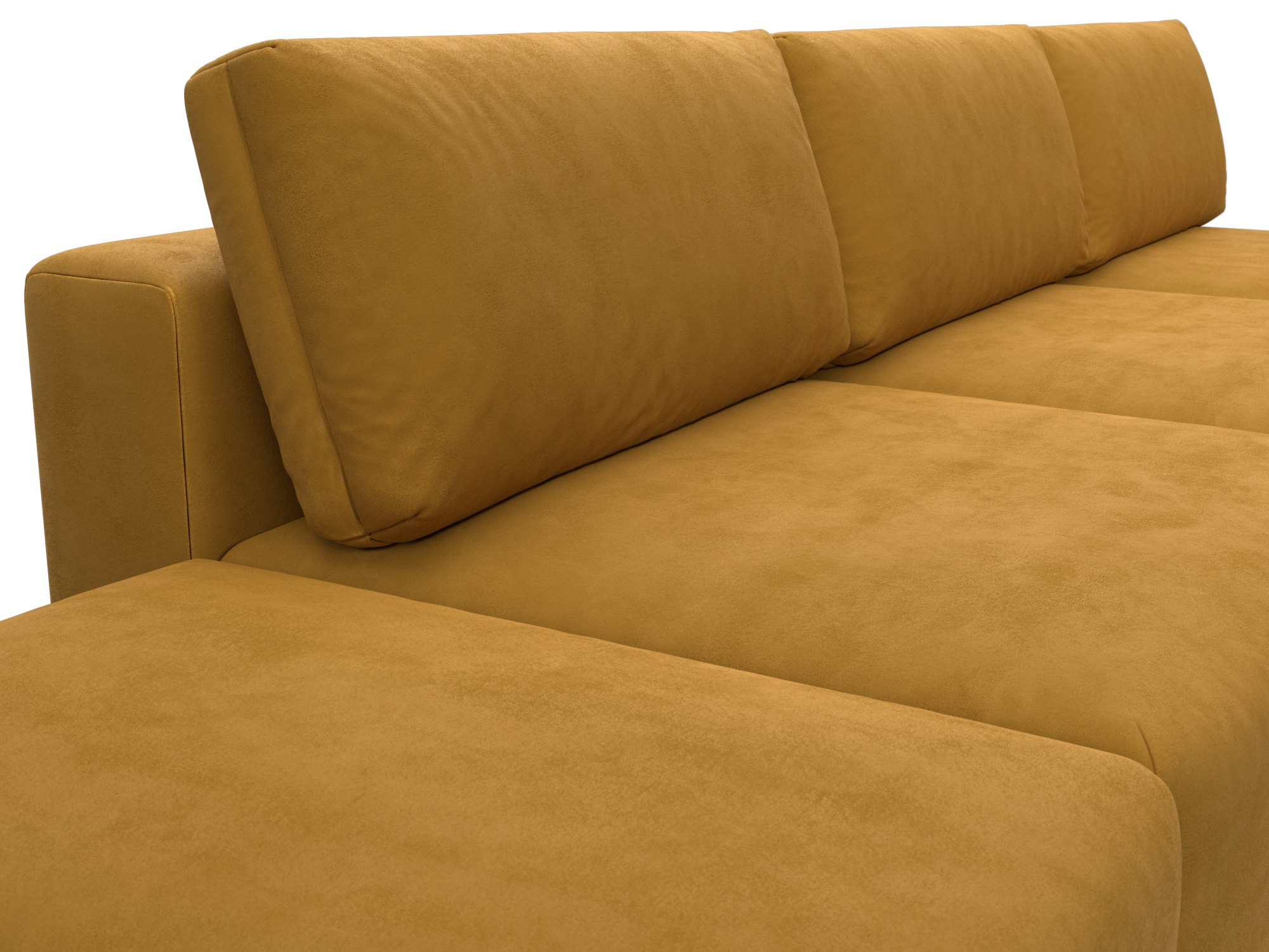 Обивка: велюр, рогожка, замша или шенилл. Угловой диван производится в различных цветовых оттенках, от которых зависит выбор ткани. Матералы прочные, не выцветают на протяжении всего срока эксплуатации.
