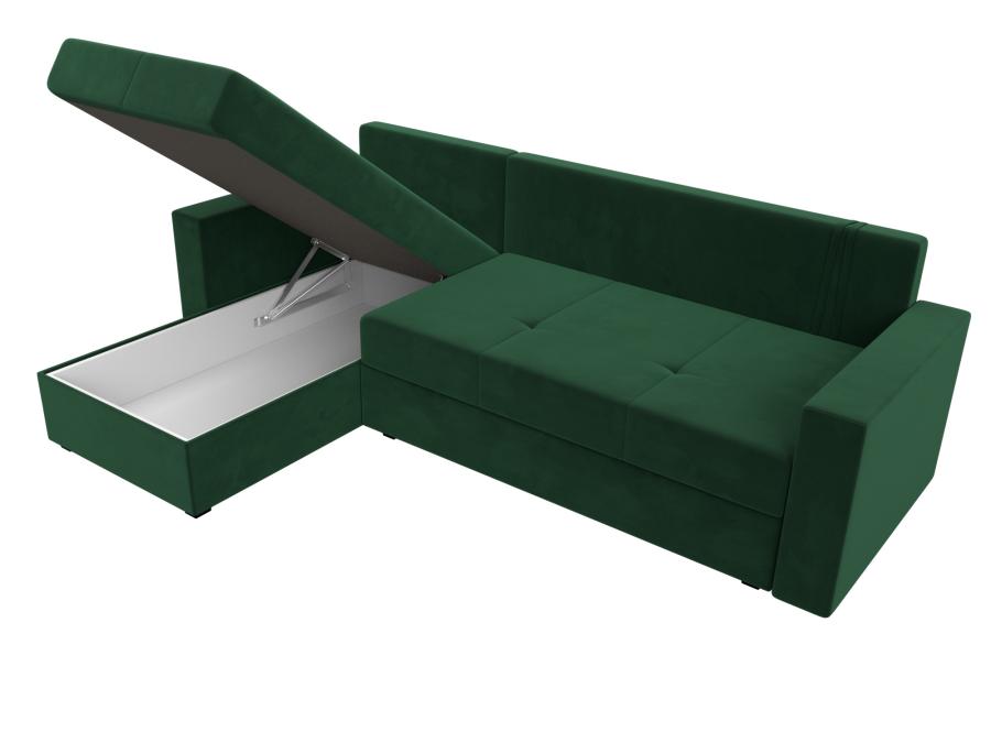 Диван угловой Верона Лайт угол левый (полностью велюр зеленый)