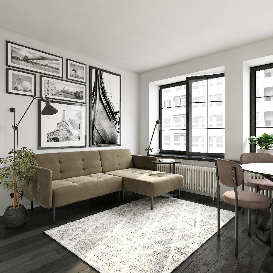 Monaco диван-кровать с шезлонгом, с подлокотниками, бархат пепельно-бежевый 25