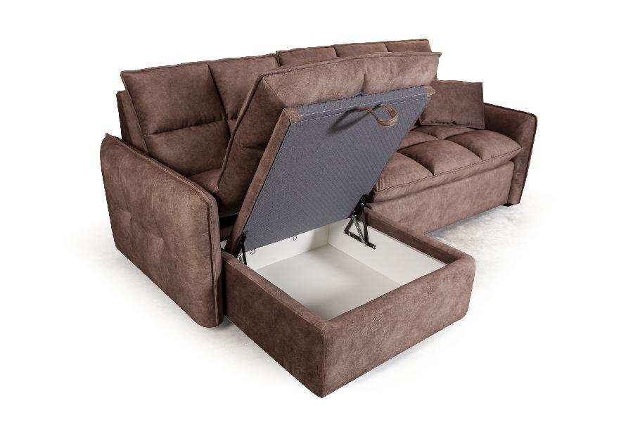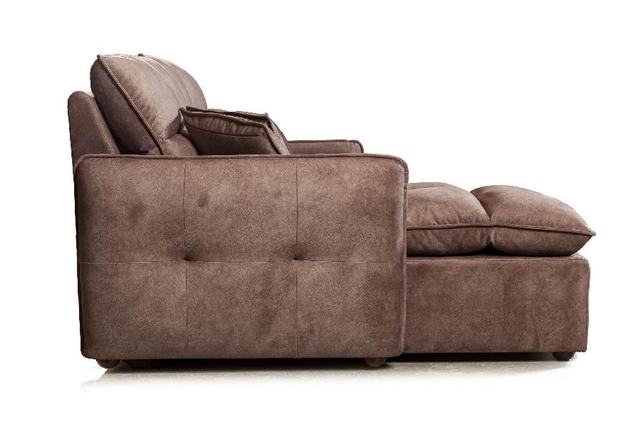 Благодаря тому, что модуль «шезлонг» в данной модели взаимозаменяемый, его всегда можно переставить на другую сторону, тем самым сменить обстановку. Видимые части данной модели выполнены полностью в основной ткани. Это позволяет установить модель не только у стены, но и в любом месте комнаты, тем самым зонировать пространство помещения и воплотить все свои дизайнерские идеи.
