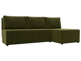 Поло – угловой диван со спальным местом без подлокотников. Спинка дополнена тремя мягкими подушками. Угол, по желанию владельца, размещается с правой или левой стороны. Для хранения белья в конструкции предусмотрен ящик.