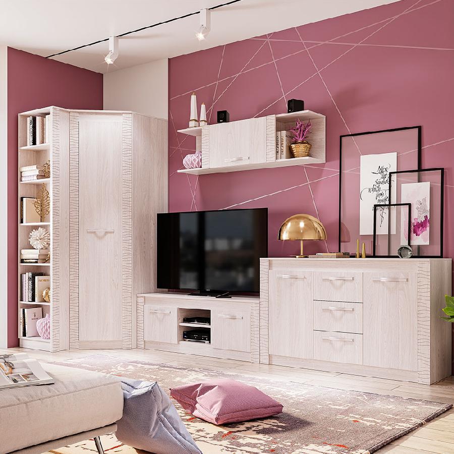 Изделие изготовлено в светлом цвете белого ясеня из качественной ЛДСП и имеет декоративные вставки из МДФ, расположить вес необходимые вещи можно в трех выдвижных ящиках, либо на полках за распашными створками.