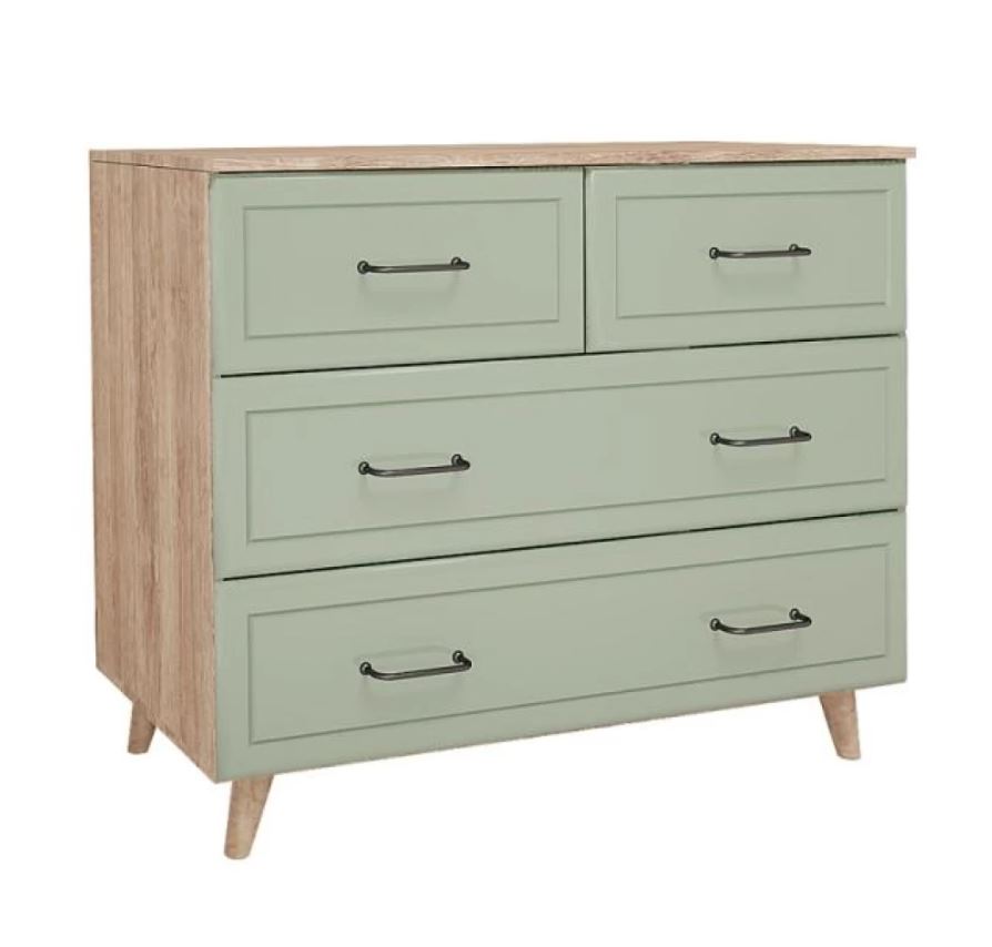Комод оснащен двумя маленькими и двумя большими выдвижными ящиками на шариковых направляющих.