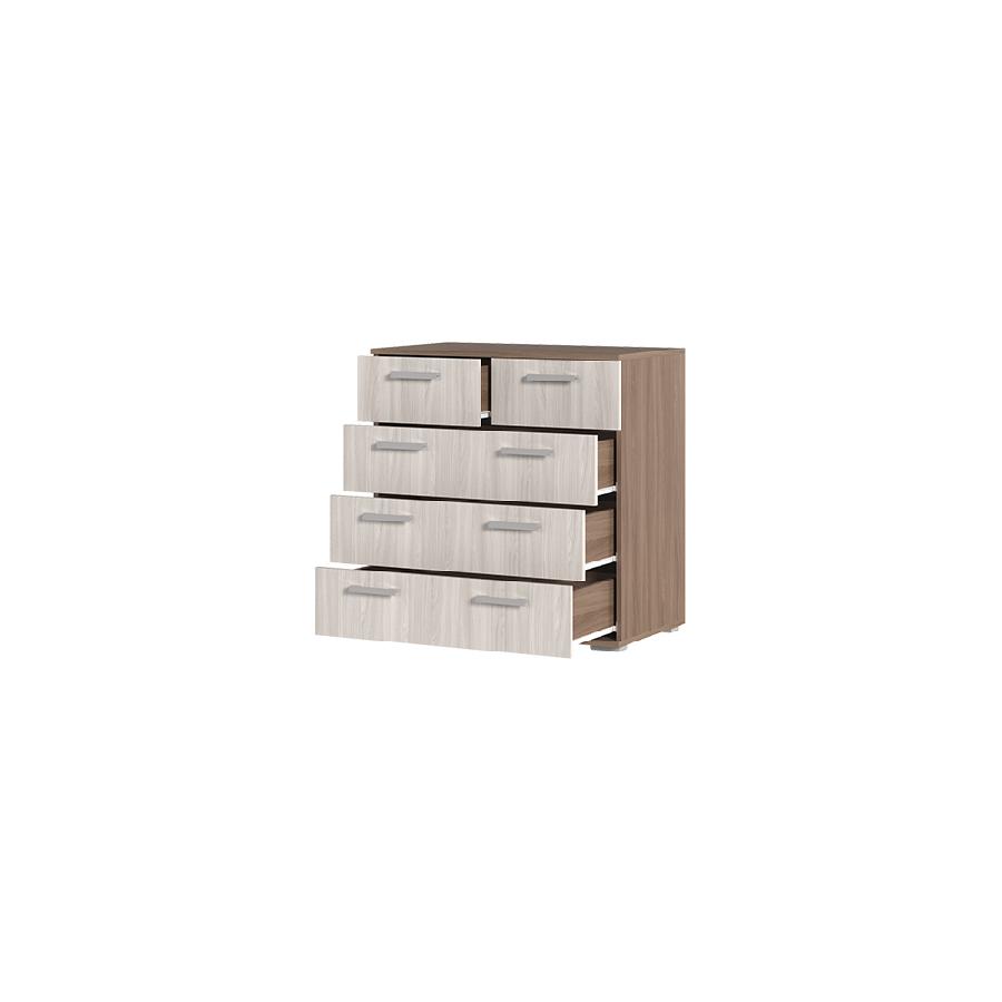 Вместительный комод К-5 имеет два малых ящика наверху для белья и аксессуаров и три больших, в которых будет удобно хранить одежду и вещи.