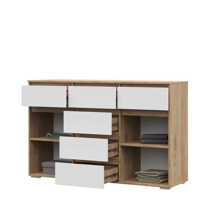 Комод квазар, благодаря лаконичному дизайну, станет прекрасным дополнением любого современного интерьера. Отлично подойдет для детской, спальной и прихожей. Комод изготовлен из высококачественного ЛДСП класса Е1, экологичного и безопасного материала. Мебель безвредна для здоровья, не имеет неприятного запаха. Соответствует всем требованиям и нормам РФ.