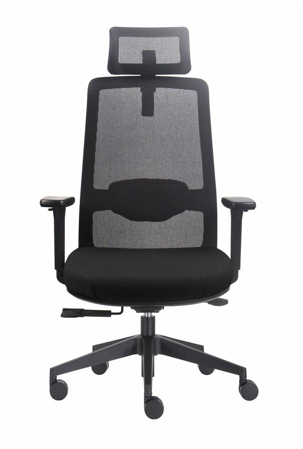 Кресло Cross — это функциональное и современное решение для тех, кто ценит комфорт и продуманный эргономичный дизайн. Чёрный цвет и лаконичные формы делают кресло универсальным для любого офисного интерьера. Сиденье обито прочной тканью и наполнено пеной Memory foam, обеспечивающей комфорт при длительной работе. Спинка из сетки с пластиковой рамой дополнена регулируемой поясничной опорой. Подголовник настраивается по высоте и углу наклона для поддержки шеи. 2D подлокотники с полиуретановыми накладками регулируются по высоте и обеспечивают дополнительное удобство. Нейлоновая крестовина и ролики диаметром 60 мм обеспечивают стабильность и лёгкое передвижение. Синхромеханизм со слайдером позволяет адаптировать кресло под рост сидящего и фиксировать спинку в трех положениях. Максимальная нагрузка — 130 кг. Гарантия производителя — 5 лет.