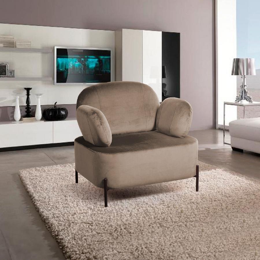 Компактное кресло подойдет для помещения любого размера. Ножки и внешний каркас кресла выполнены из металла, окрашенного на выбор в черный или белый цвет, который выгодно контрастирует с обивкой мягкого сиденья.