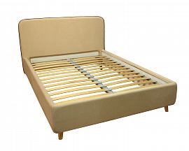 Кровать Афродита, мягкое изголовье с кантом, царги Премиум с противоударным профилем. Задняя часть изголовья обшита основной тканью. Матрас с подъемным механизмом и ящиком. Опоры массив сосны, h120мм.