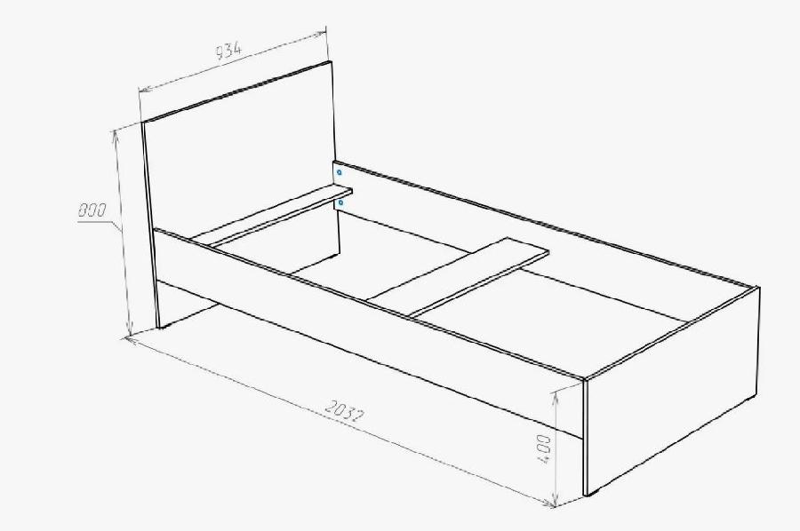 Кровать 2,0 м х 0,9 м "Бася" ЛДСП белый