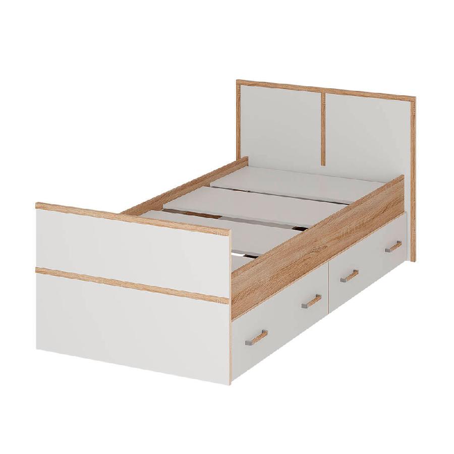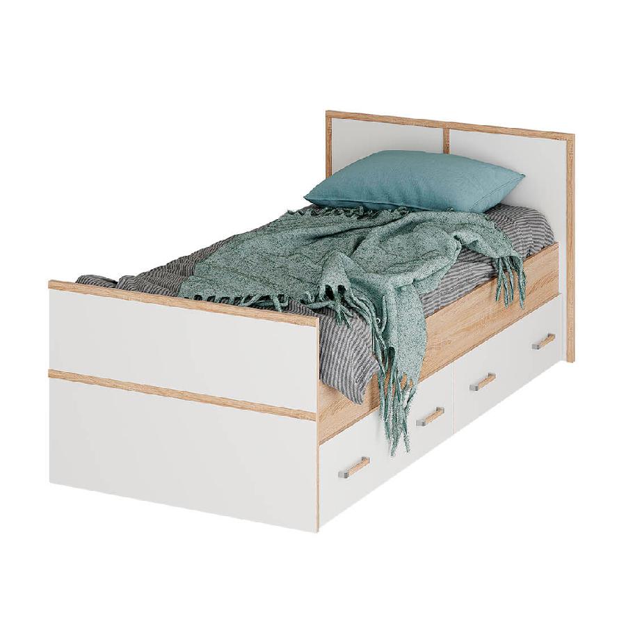 Односпальная кровать Сакура выполнена из ЛДСП высокого качества в контрастных цветах сонома и белый.