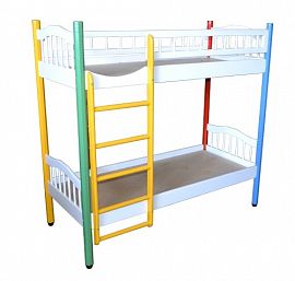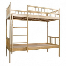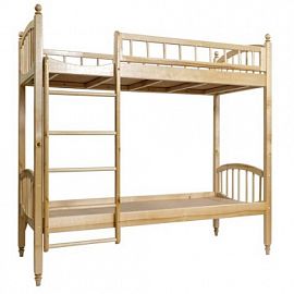 Прекрасно экономит пространство. Благодаря лаконичному дизайну, кровать отлично впишется в любой интерьер. По желанию клиента изделие может быть покрыто морилкой или краской. Кровать оборудована лесенкой, по которой детки смогут с легкостью забираться и спускаться. Спинка выполнена с круглыми шкантами.