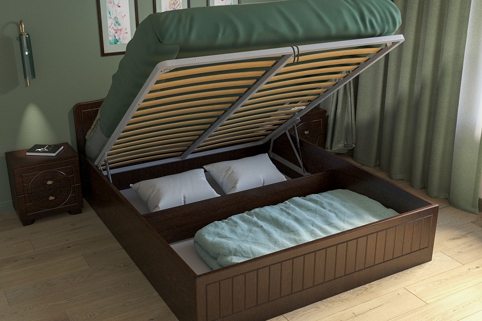 Компоненты, входящие в комплект: основание ортопедическое, подъемный механизм, ящик для белья.