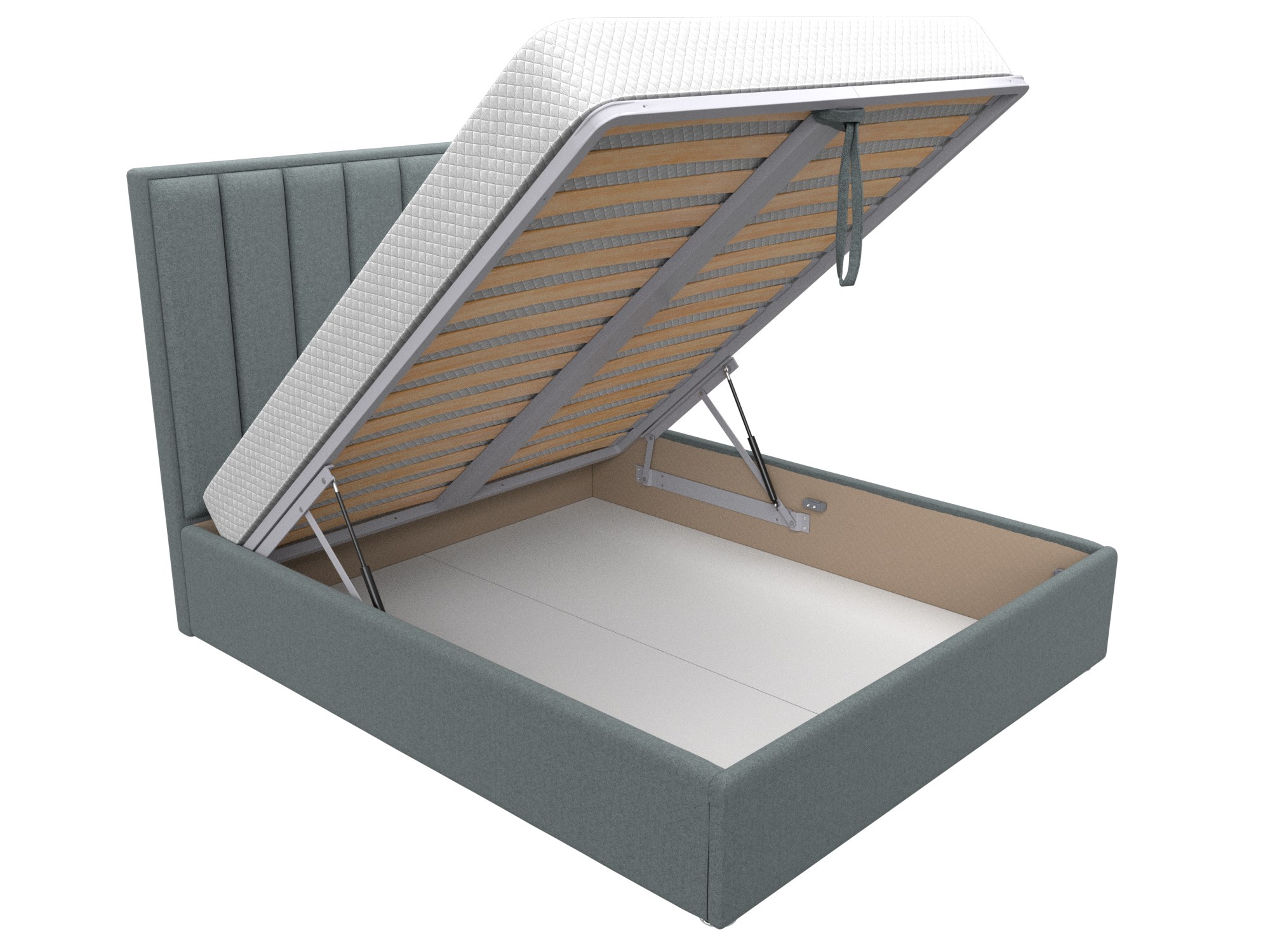Подъемный механизм: газлифт. Используется для поднятия каркаса с матрасом и открытия бельевого ящика. Изделие простое в использовании, прочное и практичное.