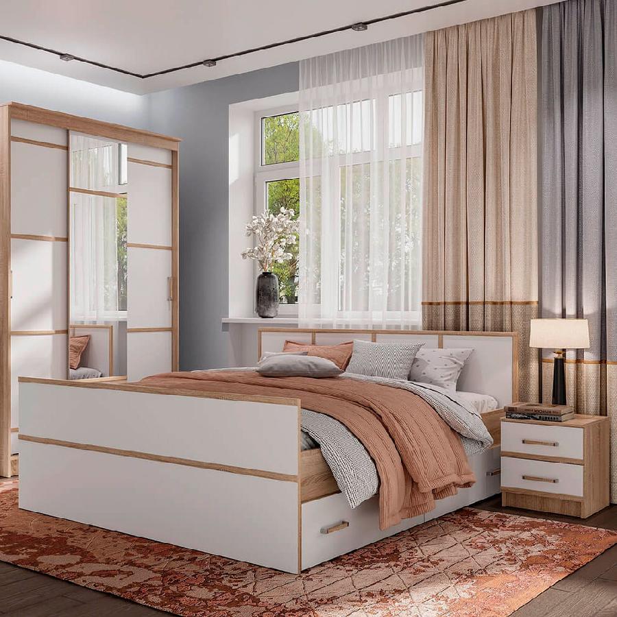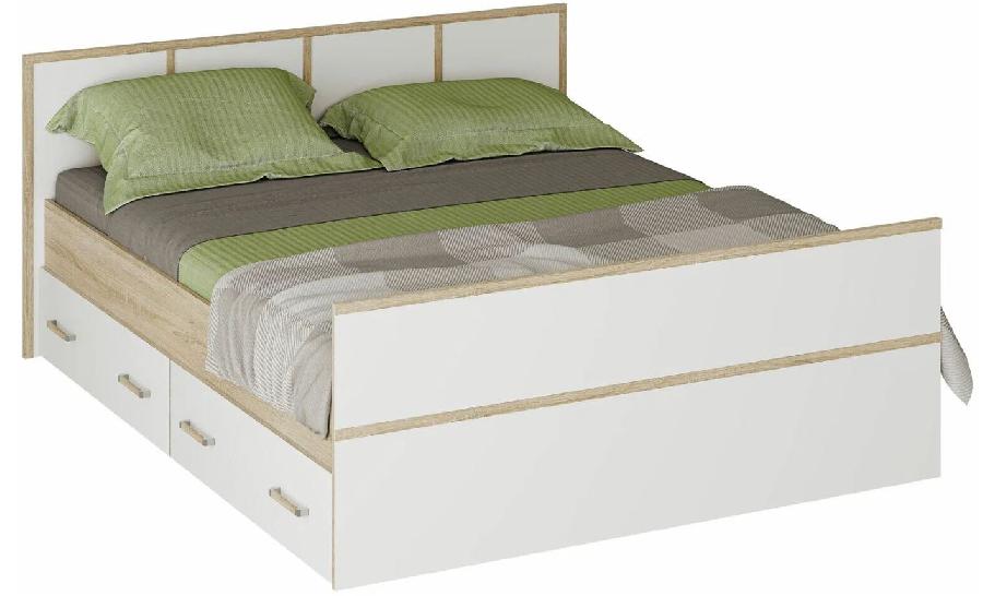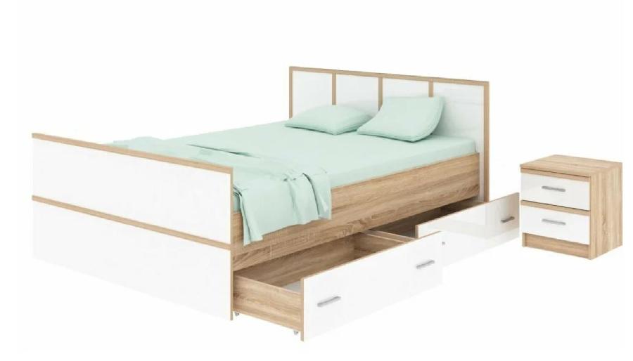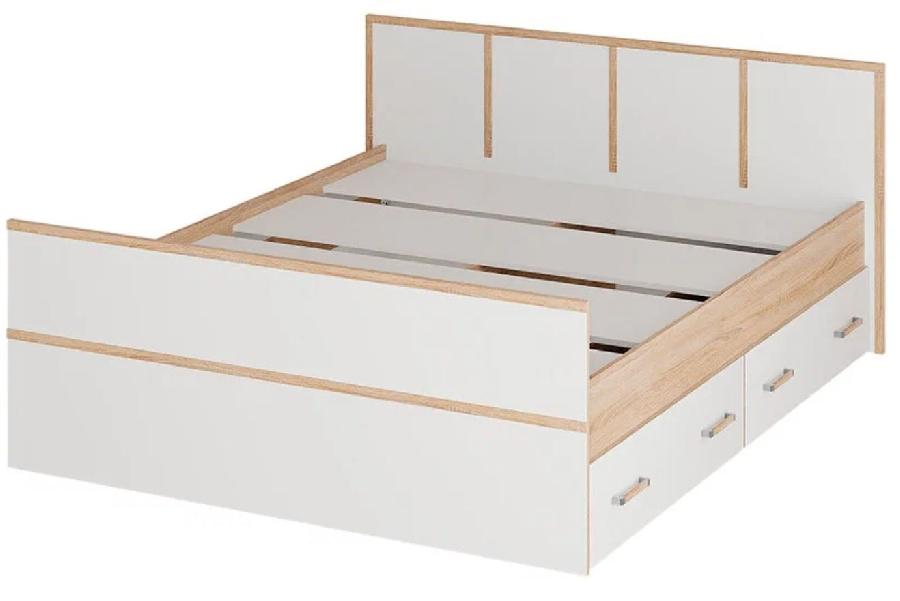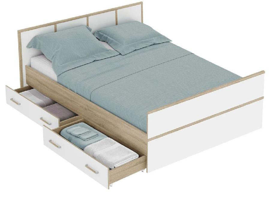 Кровать Сакура выполнена из ЛДСП высокого качества в контрастных цветах сонома и белый.