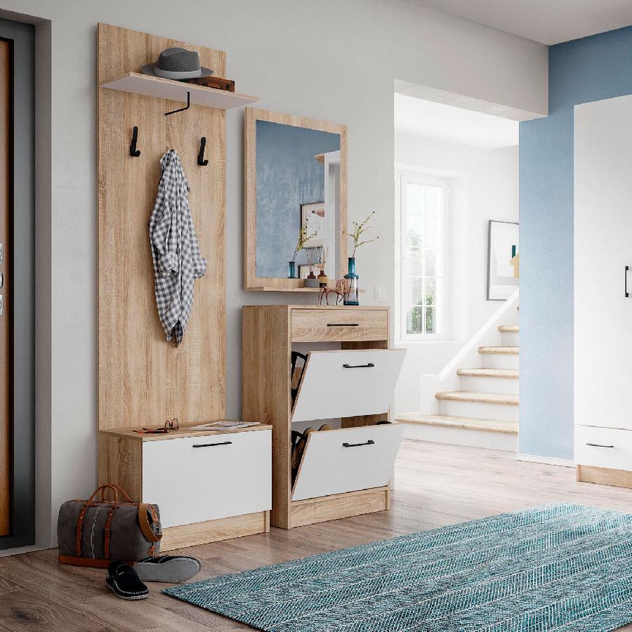 Размер: (ШхВхГ) 600х990х360 Корпус: ЛДСП - Дуб Сонома Фасад: ЛДСП - Белый с тиснением "Древесные поры" Расширенная модульная программа позволит создать композиции для прихожих любых размеров. Функциональность, эргономичность, удобство. Металлические ручки стильного черного цвета. Крючки для одежды с покрытием «Soft-touch». Товар поставляется в разобранном виде.