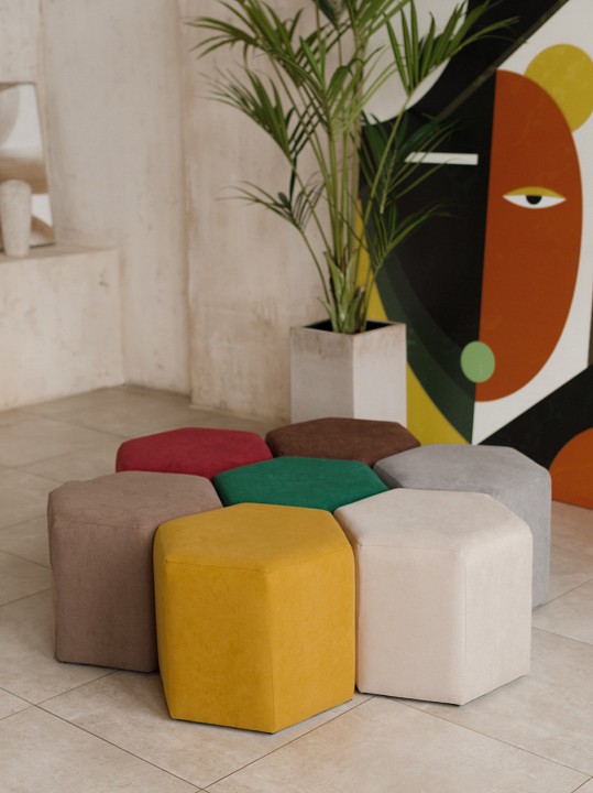 Сдержанный пуф «Сота» - замечательный выбор в любом дизайне интерьера. Отлично впишется как в гостиную, так и в детскую или прихожую. Пуф-шестигранник даёт возможность комбинировать конструкцию из нескольких штук, просто соединив их вместе. А большое разнообразие цветов позволит создать индивидуальное дизайнерское решение. Особенности:, Компактная конструкция - легко переносится с места на место., Корпус модели выполнен из прочного ДСП высокого качества, благодаря чему выдерживает вес до 150 кг., Материал обивки - мебельный велюр EasyWay Clean (загрязнения легко убрать влажной губкой)., Стоит на прочных пластиковых ножках высотой 10 мм, которые не царапают напольное покрытие при перемещении. Такая мебель также станет отличным подарком для ваших близких.