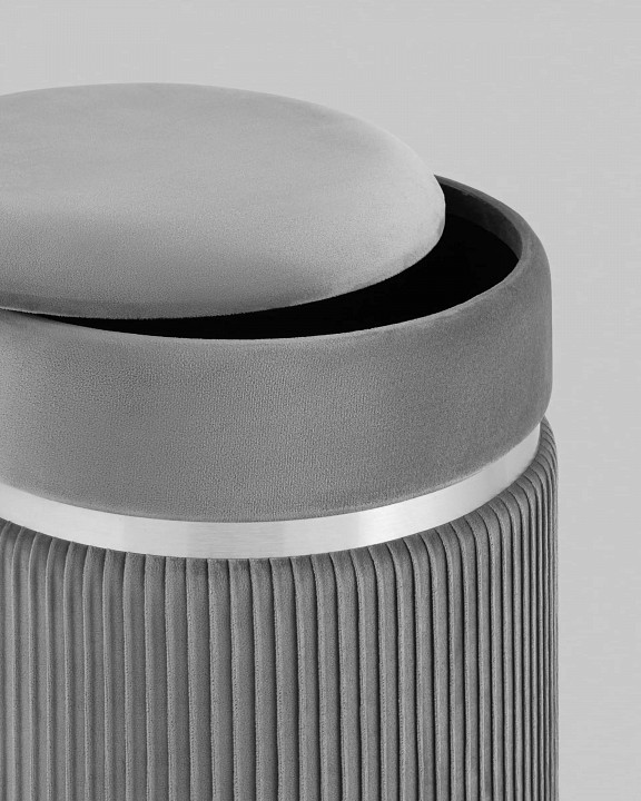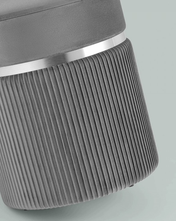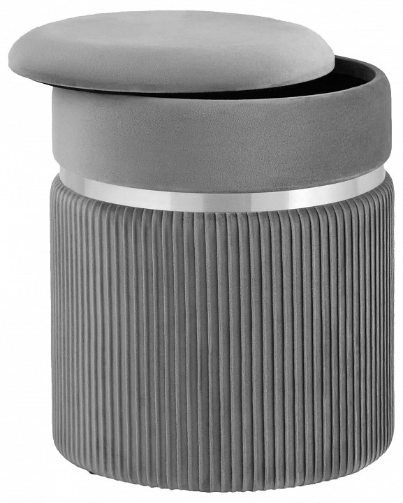 Лаконичная модель пуфа-сундука в обивке из мягкого велюра, которая дополнит интерьер вашего дома. Обивка красиво украшена декоративными оборками и металлическим ободком в серебряном цвете. Под сиденьем имеется ящик для хранения различных мелочей. В основании предусмотрены специальные подпятники, которые делают пуф-сундук более устойчивым и предотвращают скольжение.