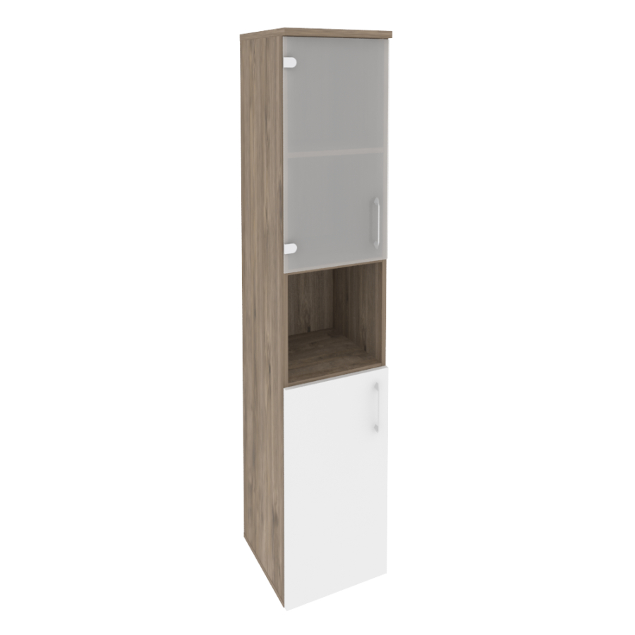 Onix Шкаф высокий узкий левый O.SU-1.4 (L) Тиквуд темный/Белый бриллиант 400*420*1977