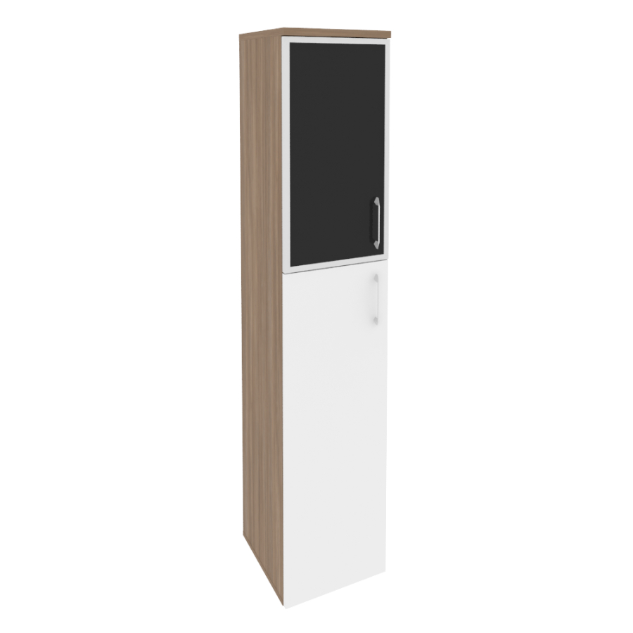 Onix Шкаф высокий узкий левый O.SU-1.7 R (L) black Дуб аризона/Белый бриллиант/Стекло black 400*420*1977