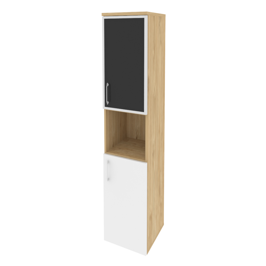 Onix Шкаф высокий узкий правый O.SU-1.4 R (R) black Тиквуд светлый/Белый бриллиант/Cтекло black 400*420*1977
