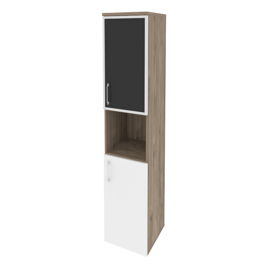Onix Шкаф высокий узкий правый O.SU-1.4 R (R) black Тиквуд темный/Белый бриллиант/Cтекло black 400*420*1977