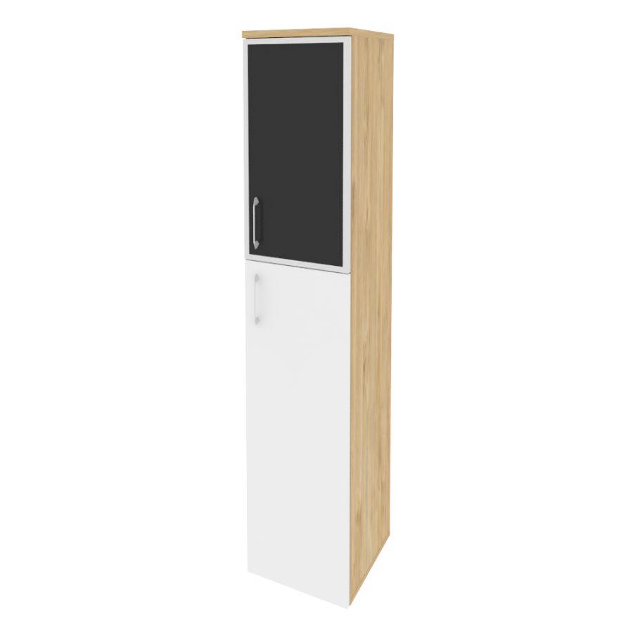 Onix Шкаф высокий узкий правый O.SU-1.7 R (R) black Тиквуд светлый/Белый бриллиант/Cтекло black 400*420*1977