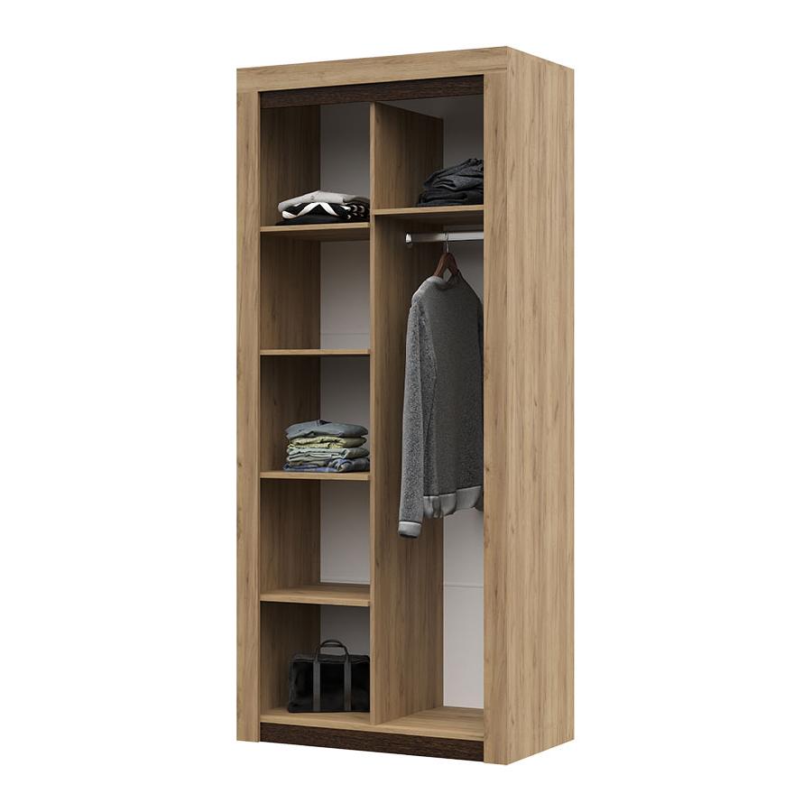 Шкаф имеет в наполнении полки и штангу.