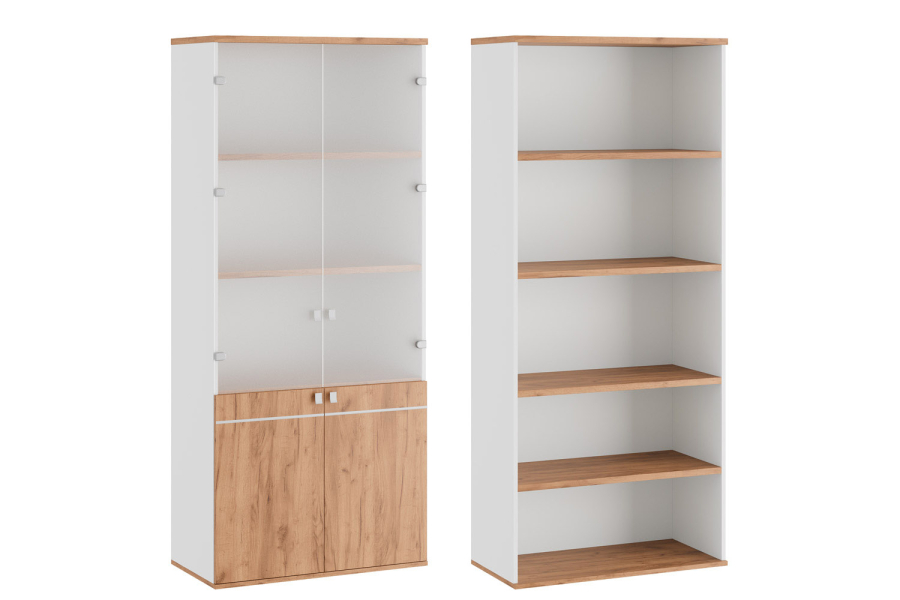 Шкаф для бумаг со стеклом (стекло без рамы) Tess 90x45x207 дуб крафт золотой