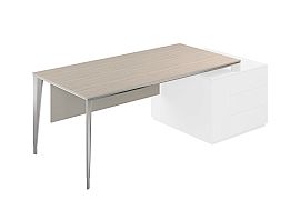 Визуальная легкость и оригинальный дизайн подчеркиваются уникальной формой ножек столов, сужающихся книзу. Это не только исключительная особенность дизайна, но и её функциональная составляющая, обеспечивающая выравнивание мебели на полу и эстетичное размещение кабелей, которое можно осуществить прямо через ножки или через кабель канал.
