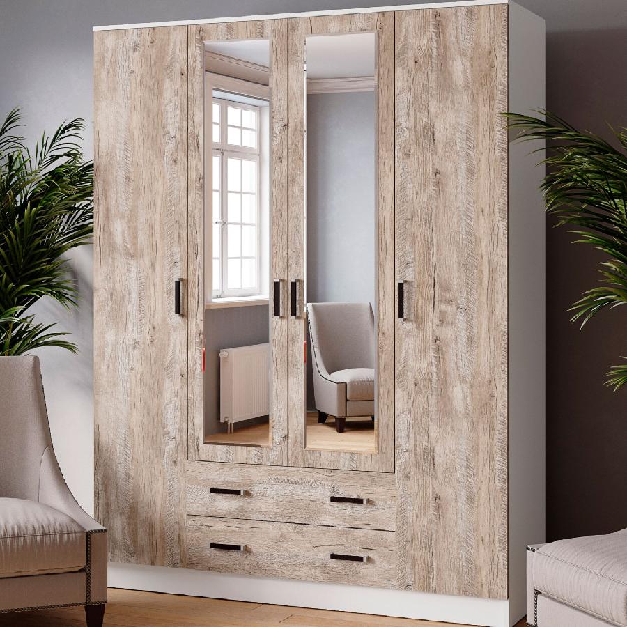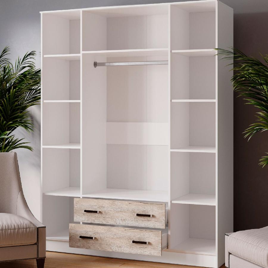 Шкафы шириной 1600 мм - комбинированные, есть отделение с полками для вещей и стационарная штанга для одежды.